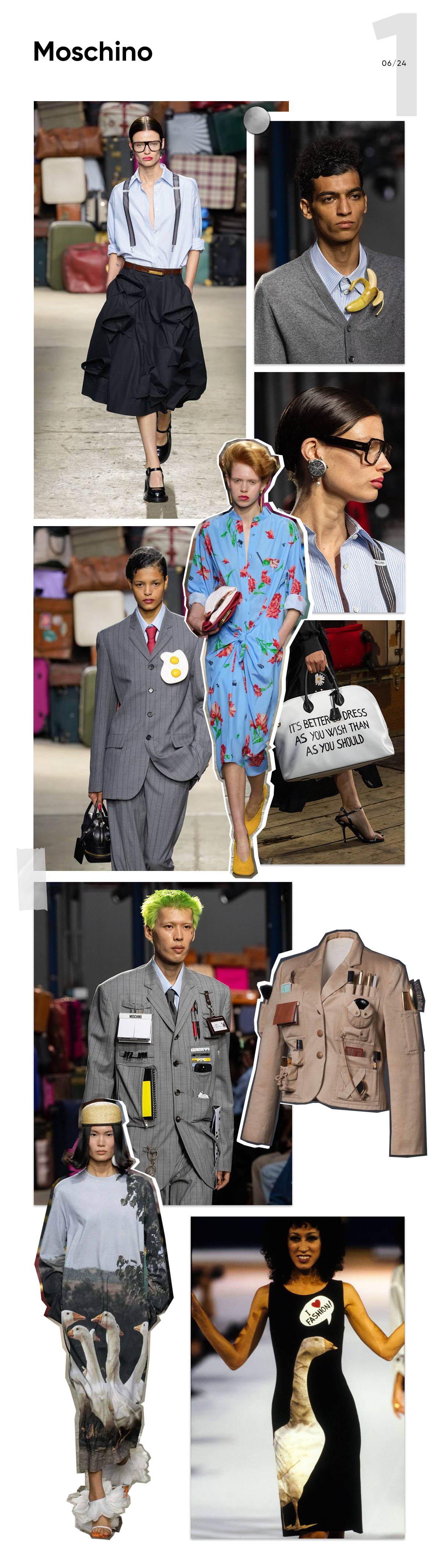 Moschino Spring 2025 is the second collection curated by Adrian Appiolaza in the role of creative director. And this collection is just amazing. Appiolaza masterfully works with the legacy of Franco Moschino but manages to keep it balanced, unlike Jeremy Scott who used to study the archives and make them rather over-the-top and weird.