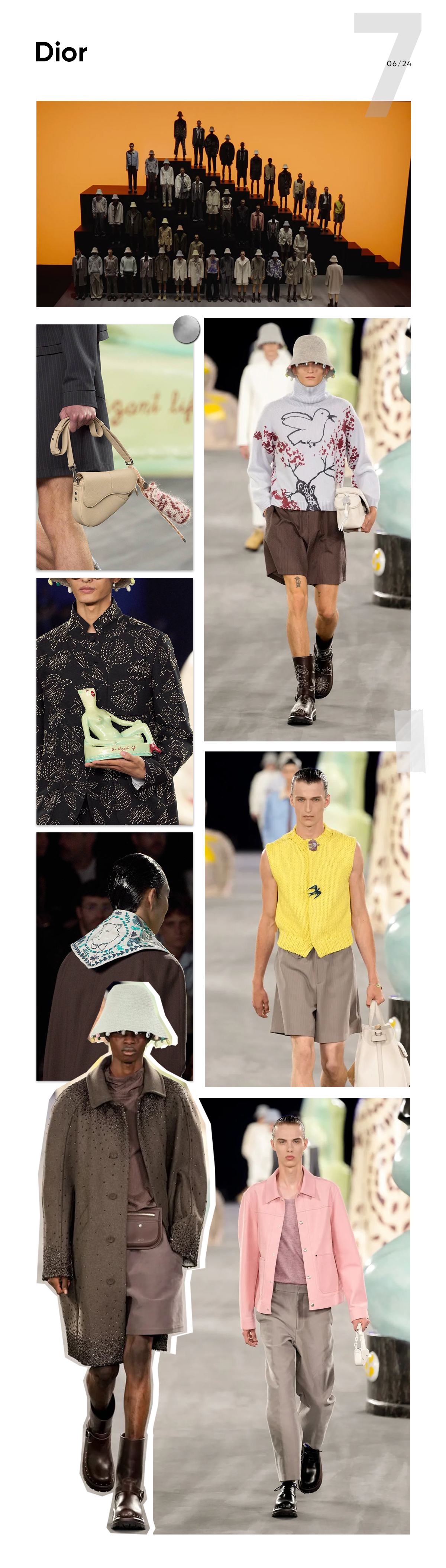 Instead of a boring regular show, Kim Jones created something that looked more like an exhibition for Dior. The runway was decorated with ceramic figurines by South African artist Hylton Nel. Many looks also referenced his works.