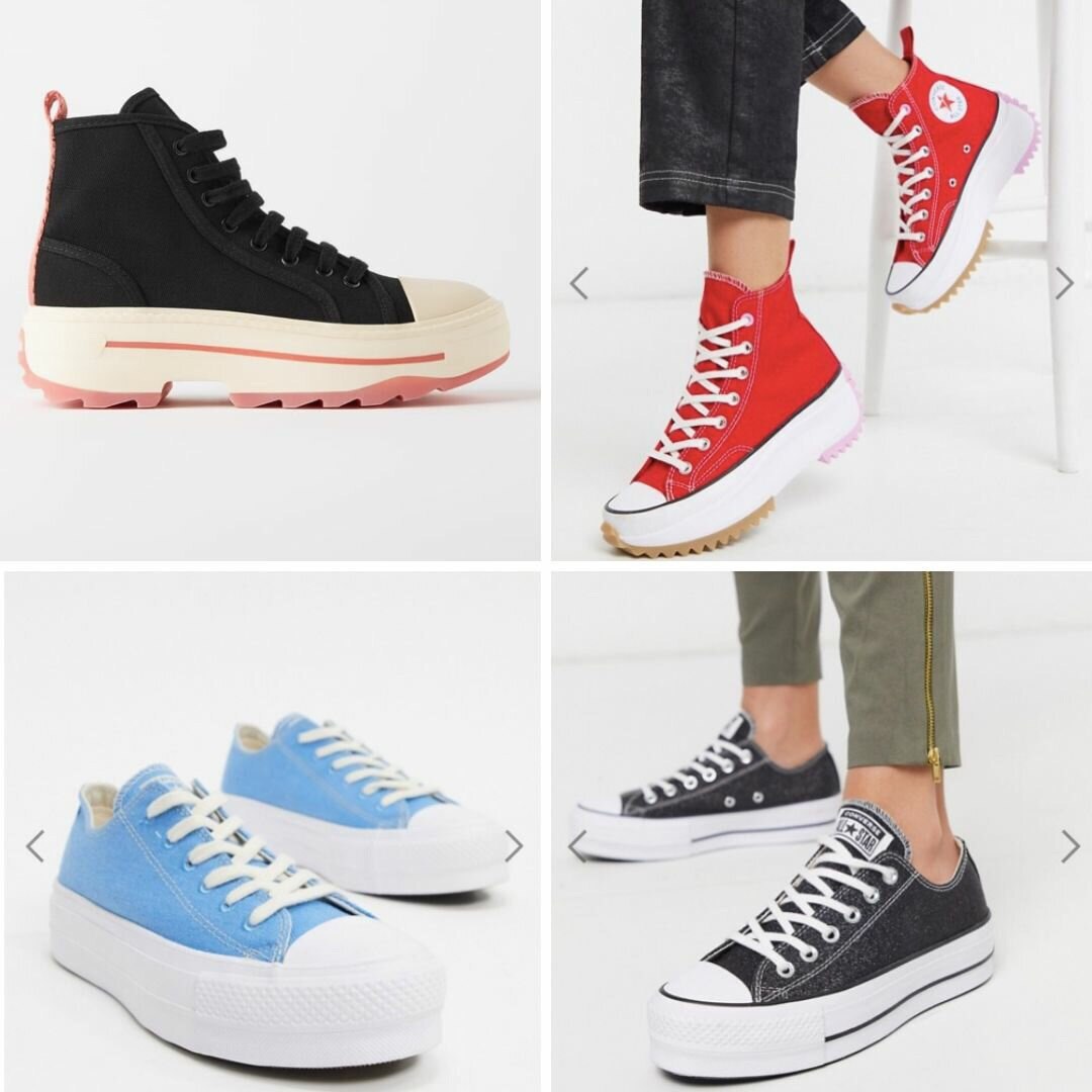 Массивные платформы классно смотрятся с широкими брюками, джинсами и даже брюками в деловом стиле, если взять, например, костюм оверсайз.