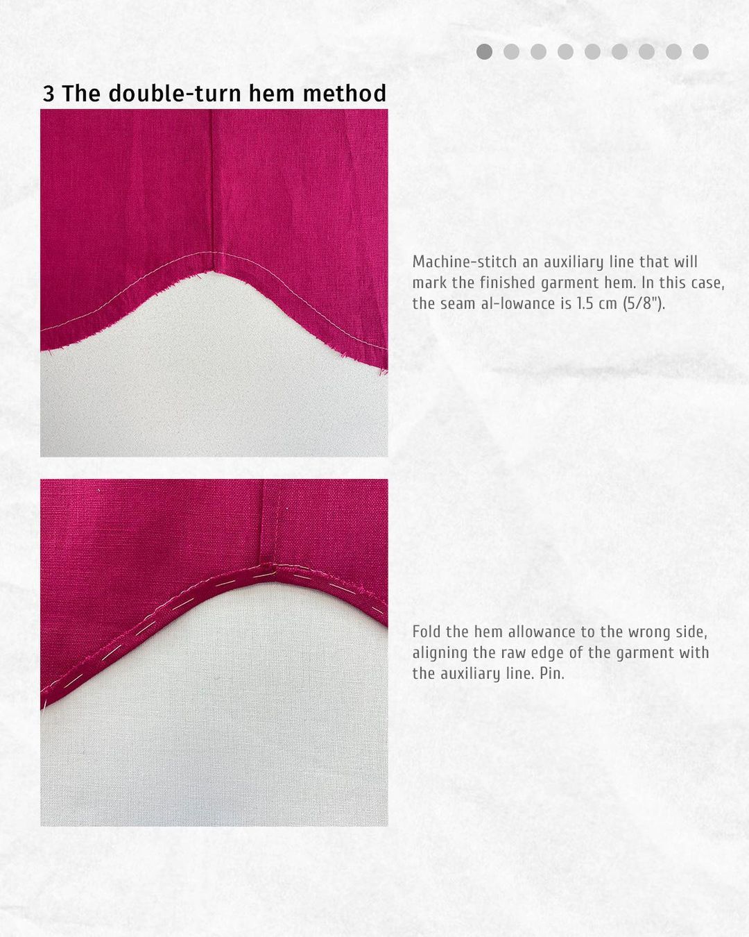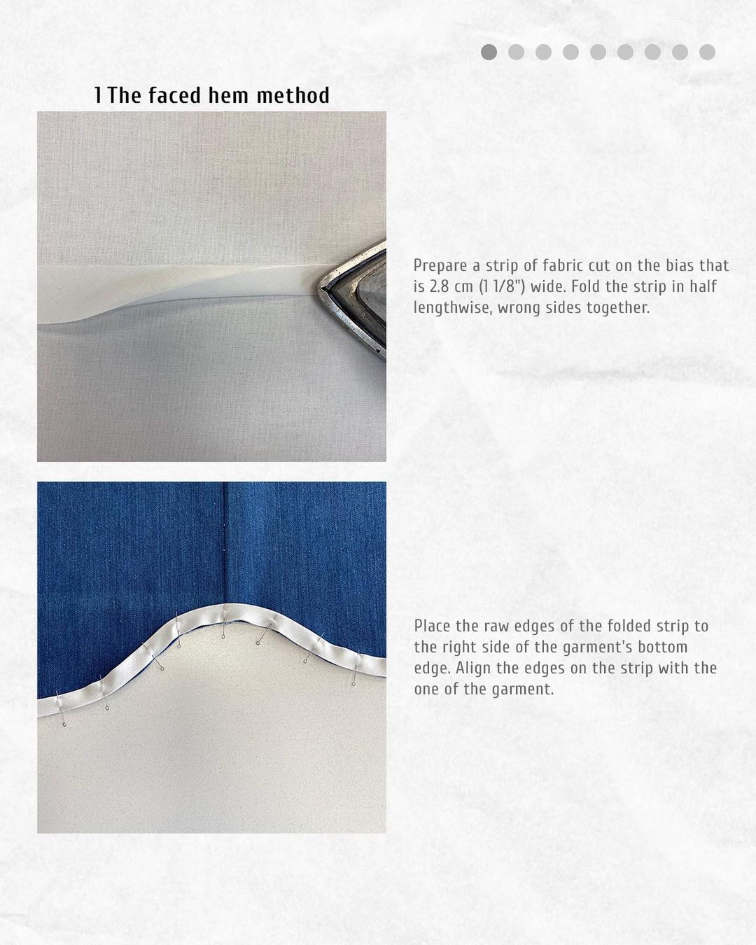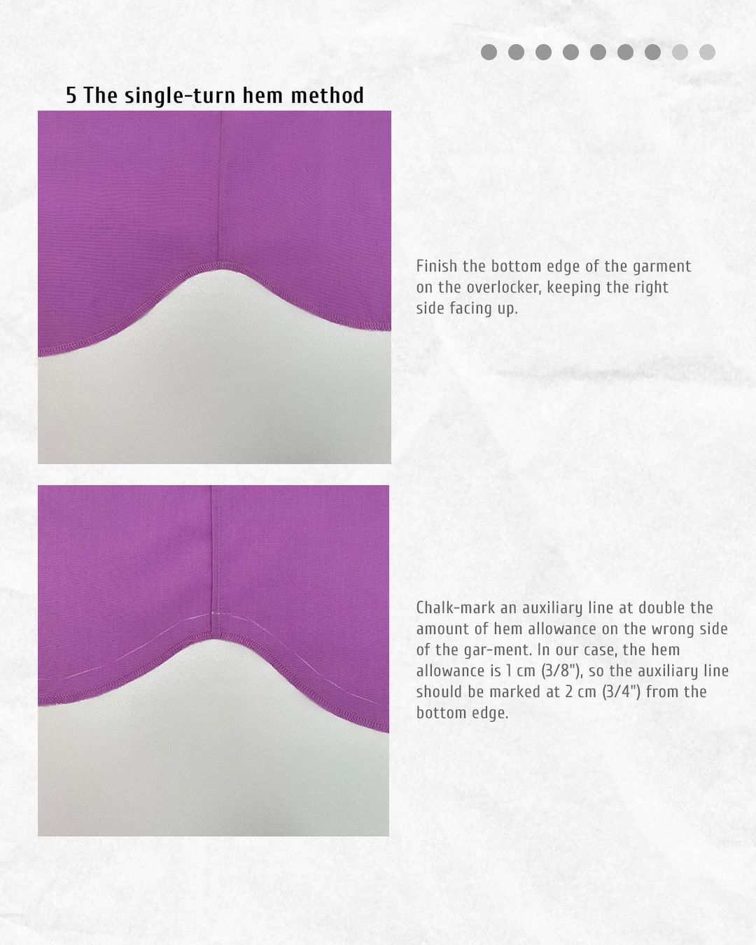 Please note that for this method you will need a 1.5 cm (5/8") hem allowance on the garment.