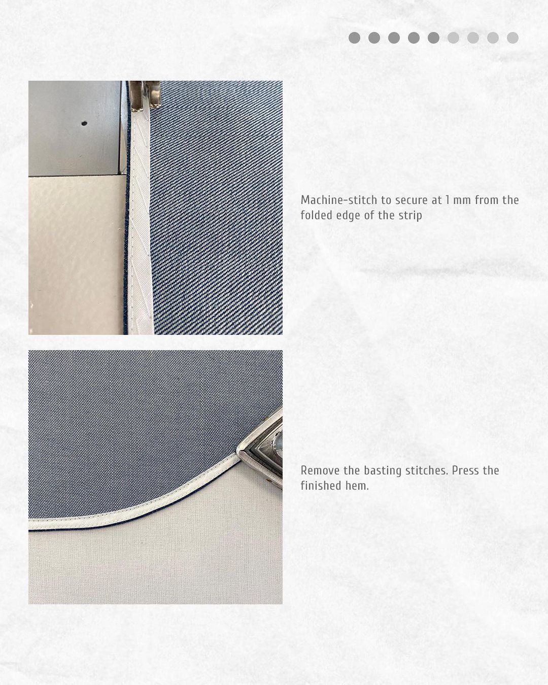 Machine-stitch to secure at 1 mm from the folded edge of the strip.