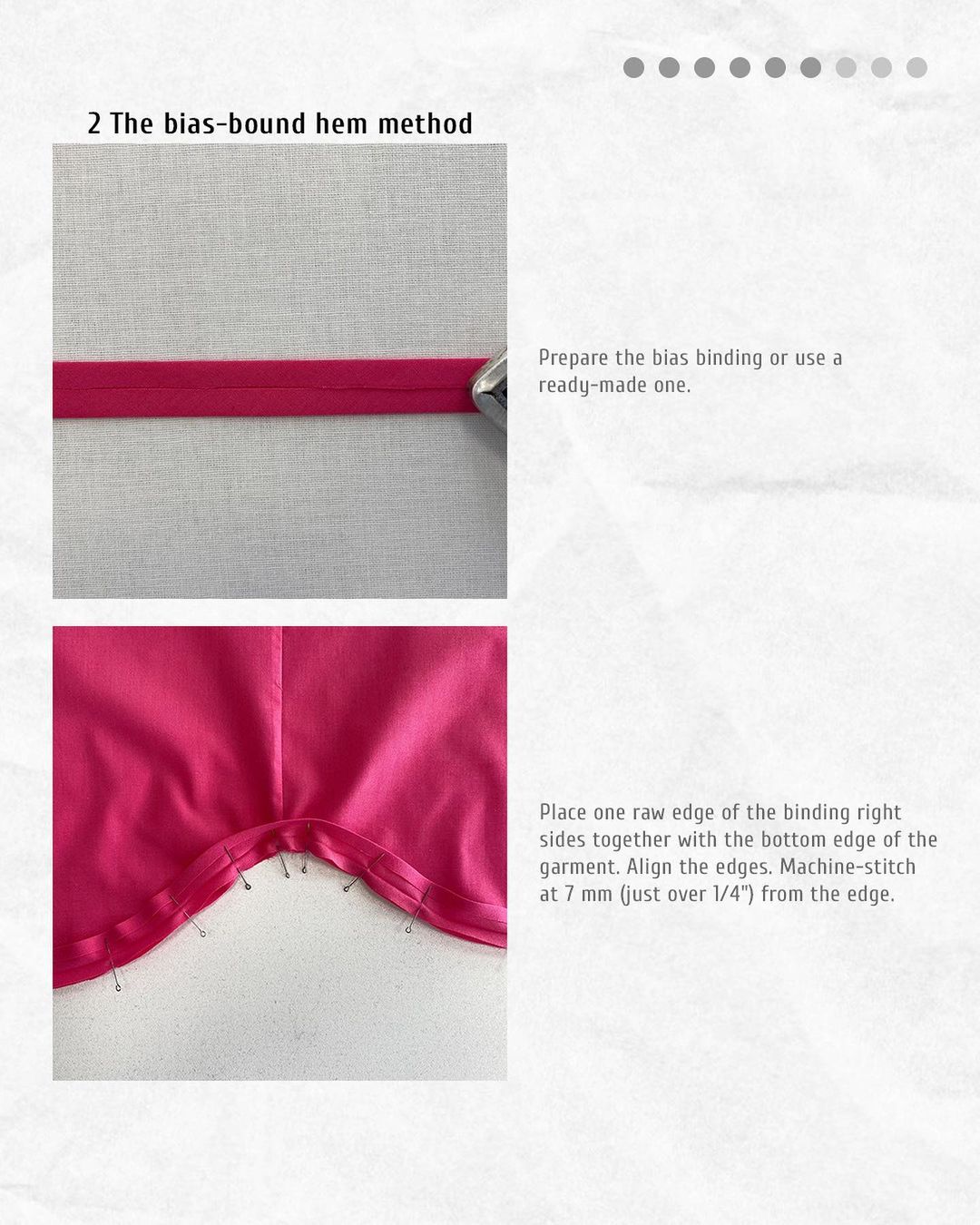Please note that for this method you will also need a 7 mm (just over 1/4") hem allowance on the garment.