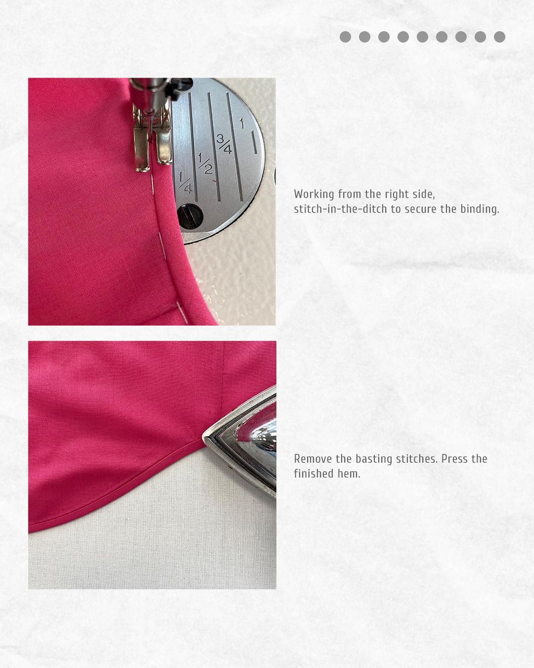Remove the basting stitches. Press the finished hem.
