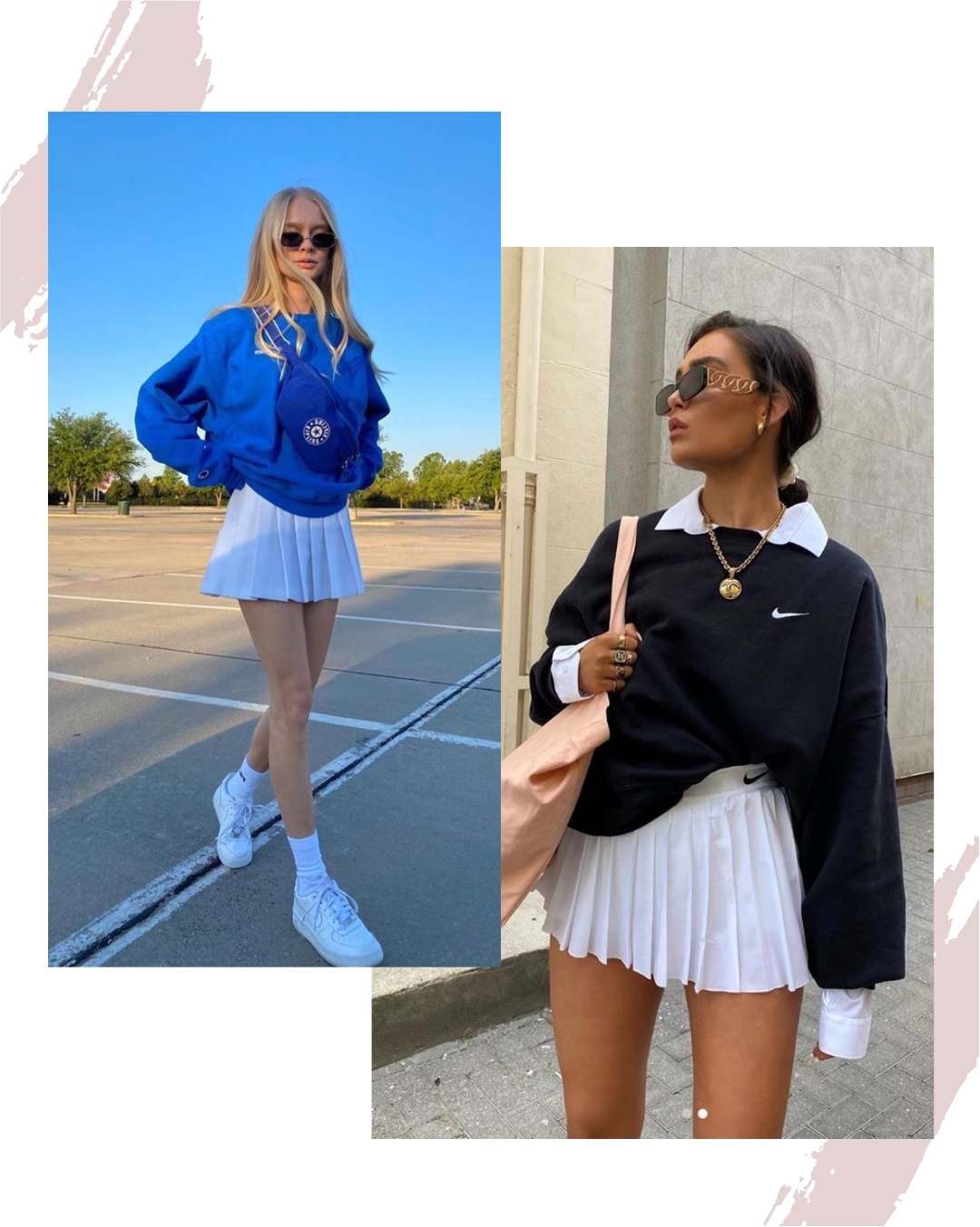 Неожиданно фэшн-инфлюенсеры облачились в теннисные юбки Nike, и понеслась…:) Вариации белой короткой юбки в складку (будто вы только что вышли с корта) появились уже у многих брендов, в том числе и в масс-маркете. Осталось только сумку-шопер в виде теннисной сумки для ракеток продвинуть, и будет спорт, шик, красота. :)