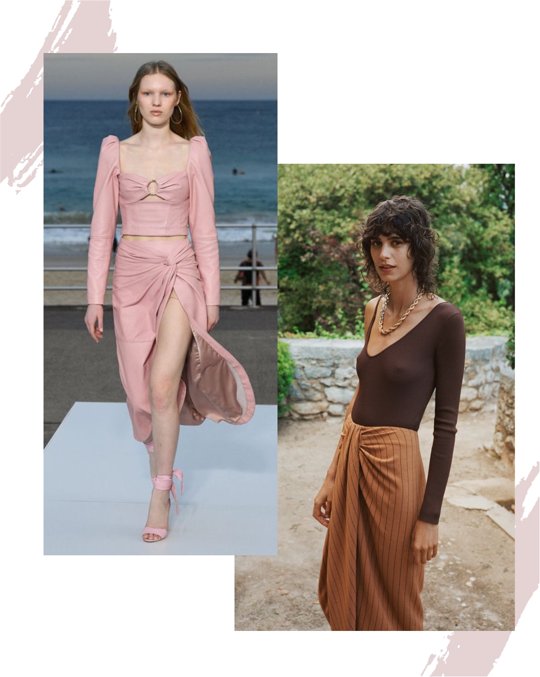 Атласные юбки не выходят из моды который сезон, да и вообще ушли уже в вечную базу. Не на смену, а в дополнение к ним появился трендовый вариант — с пикантным разрезом. Подобные были замечены и на показах весна-лето 2021, поэтому смело берите себе на заметку. А если вы выберете юбку с тесемками на бедрах, как носила Бритни Спирс и все топовые звезды в нулевые, то будете вообще на пике.