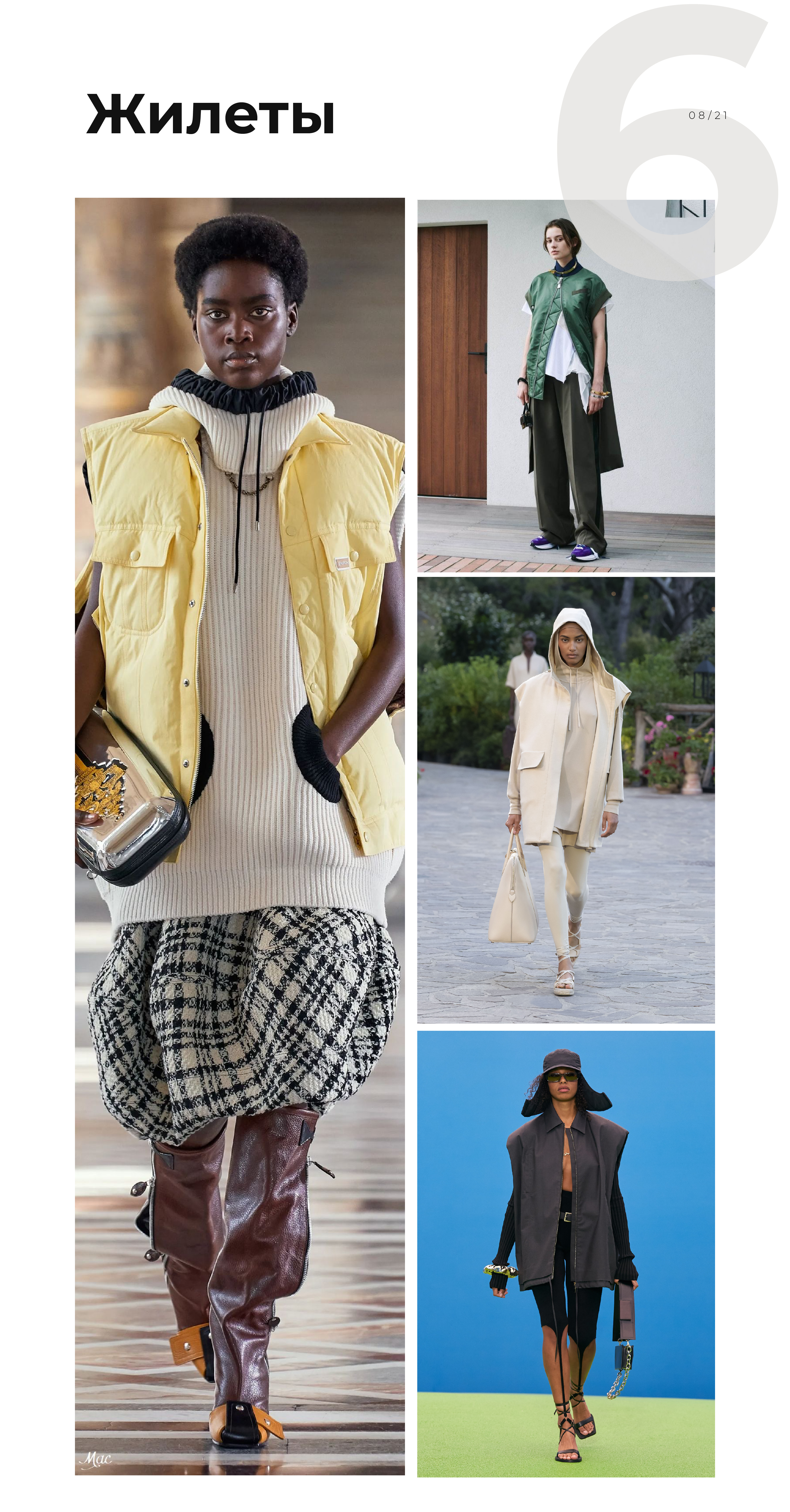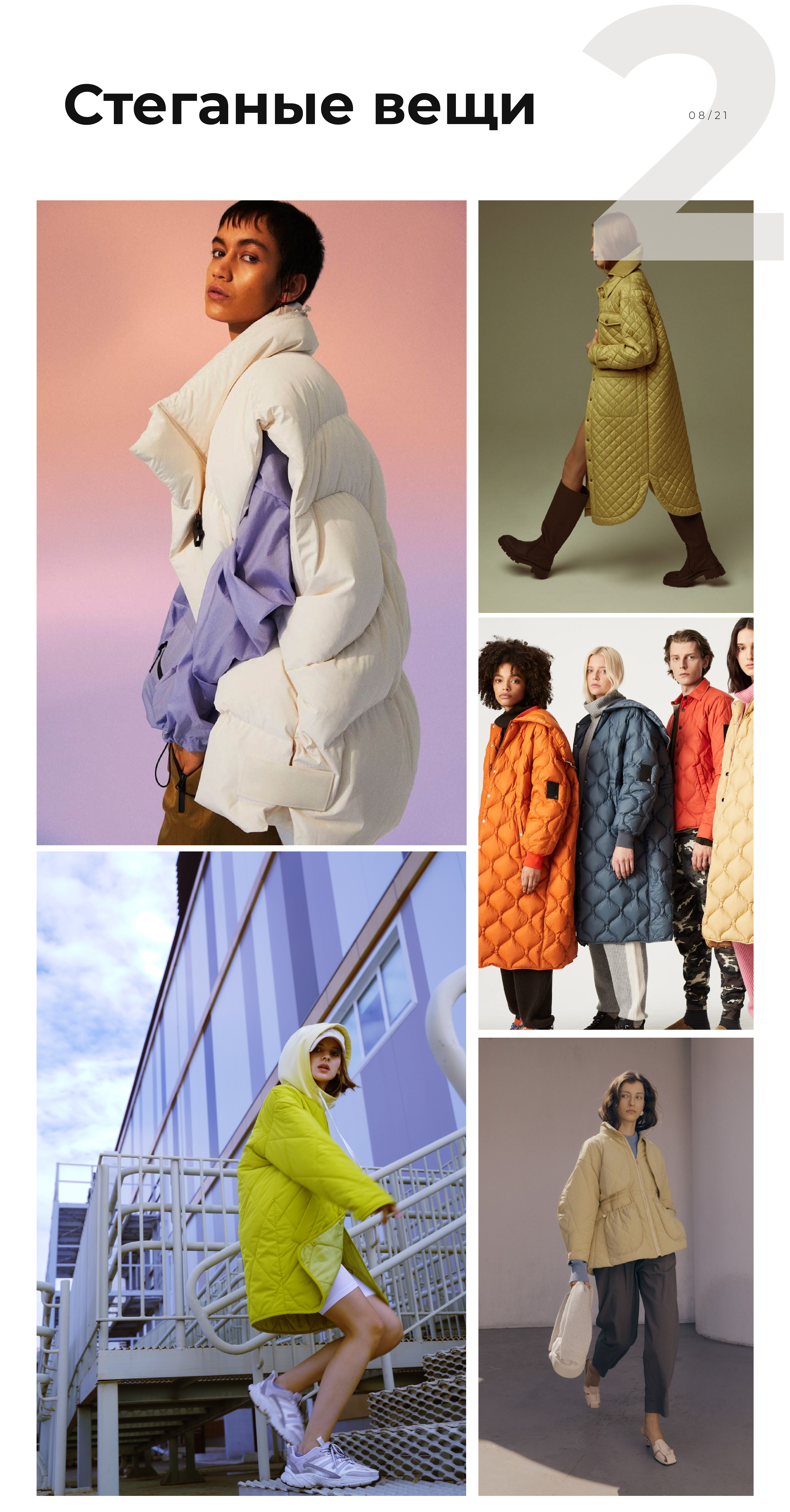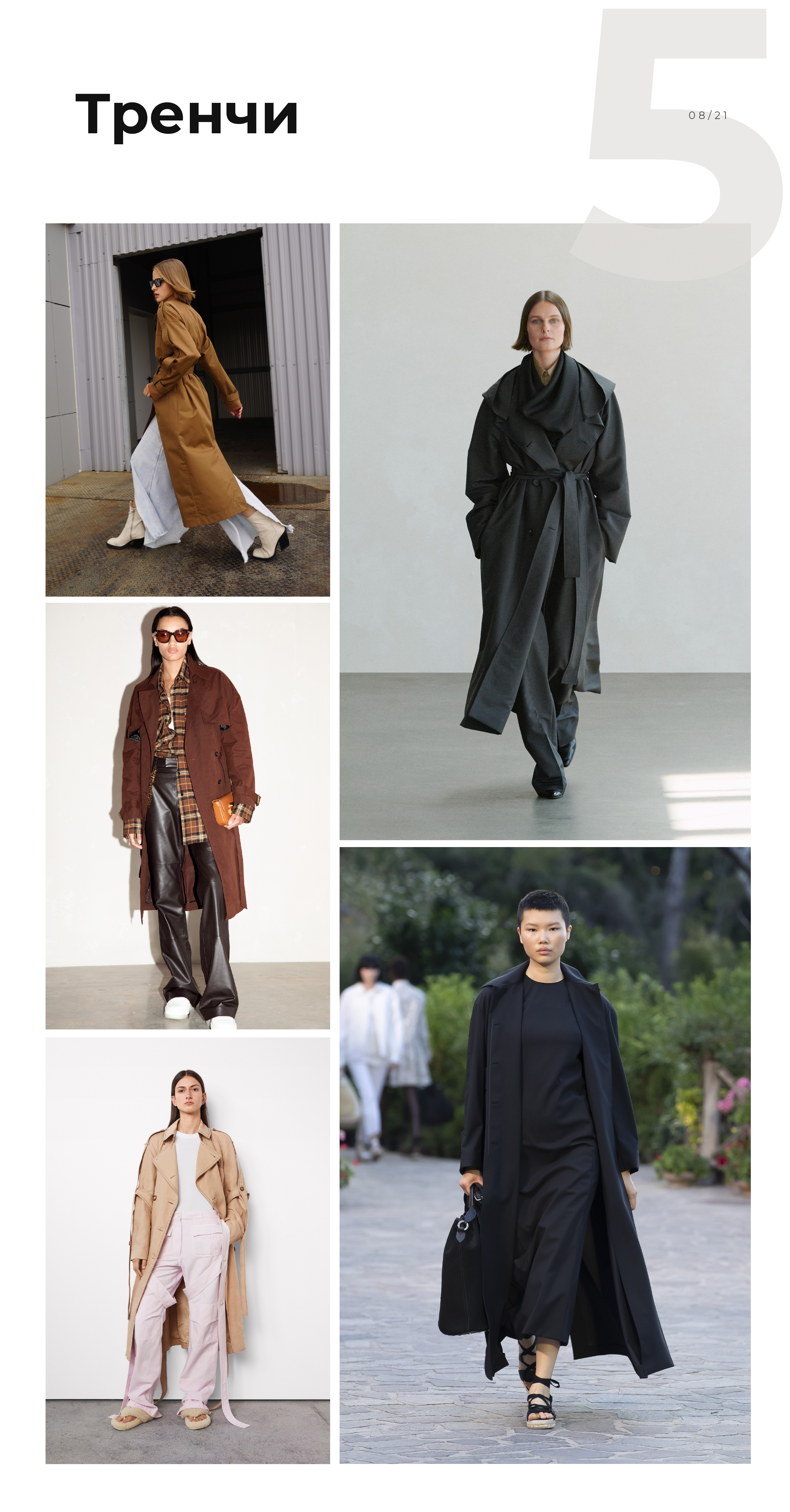 Конечно, не нужно списывать со счетов куртки-рубашки, пальто прямого кроя, пальто-халаты и косухи. Но если в этом сезоне хочется носить тренд, то выбирайте что-то из списка выше. Вполне возможно, новые формы тоже станут со временем базой. Мы рассматривали эту тему в статье «Какие тренды стали базой в 2021-м».