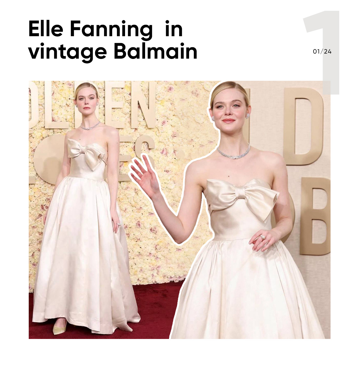 Actress Elle Fanning chose an archive vintage Balmain gown. Vintage couture looks are a lasting trend. Do you remember us talking about last year? The dress Elle Fanning wore was created by Pierre Balmain himself.