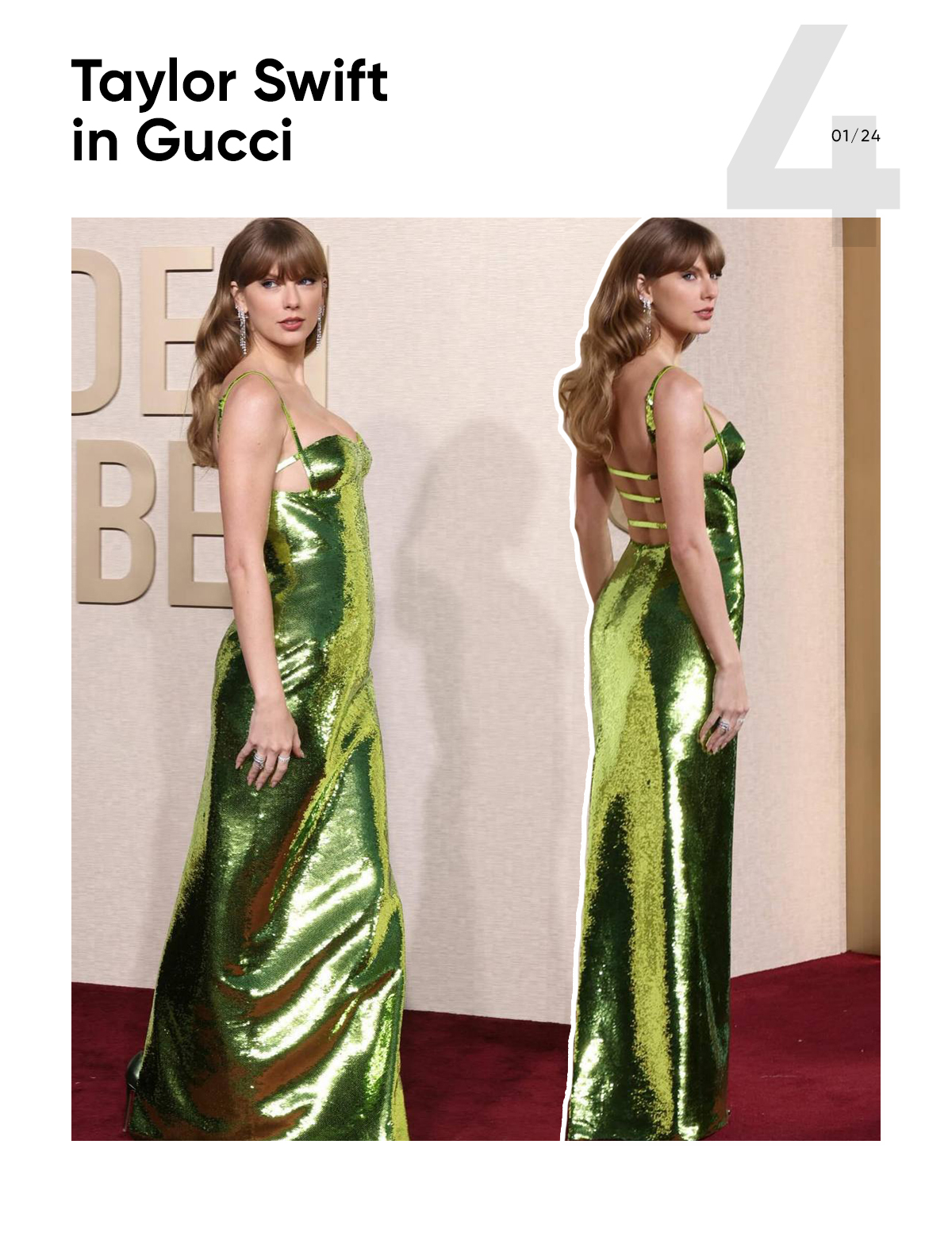 Taylor Swift deserved to be on the best-dressed list. No doubt. She chose a perfect minimalistic outfit that looked stunning instead of plain: a sleek sequined dress by Gucci, minimum of jewelry, and perfect hair. A recipe for success.