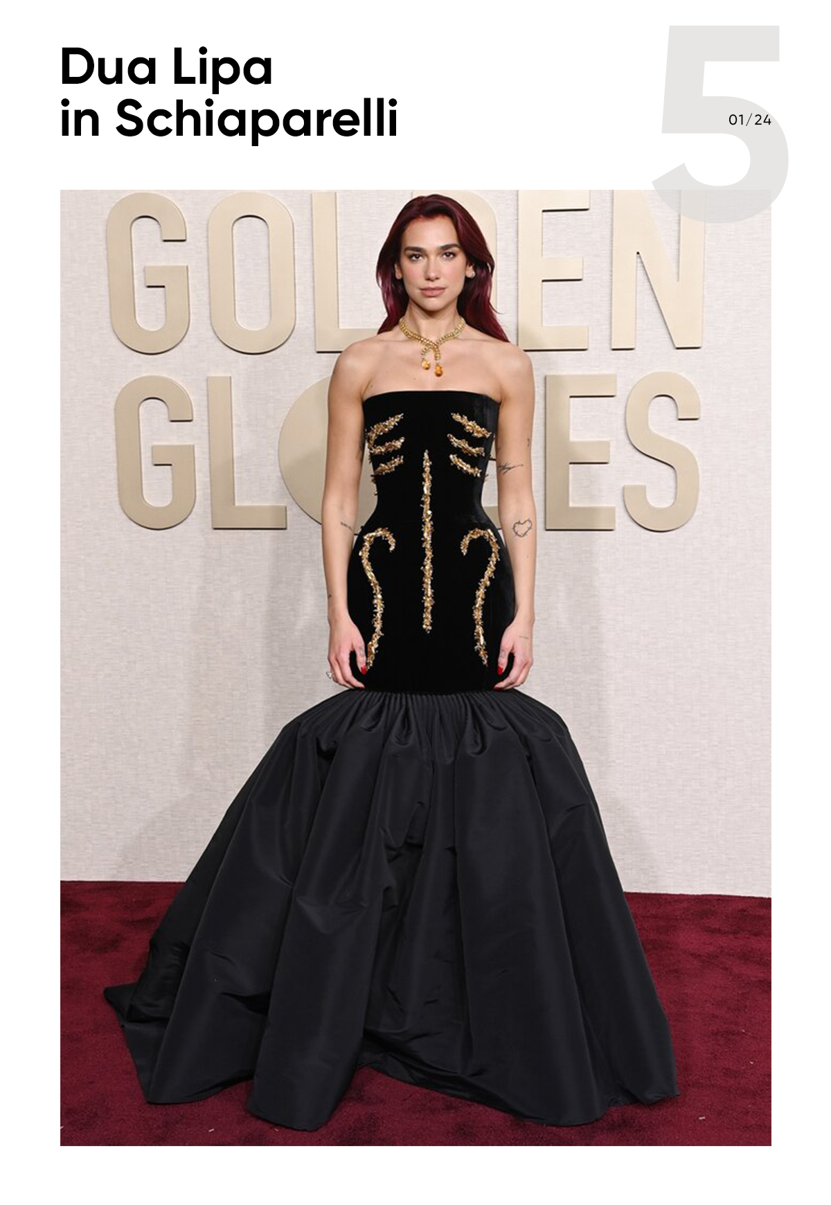 Surreal gowns by Schiaparelli guarantee you won’t be unnoticed on the red carpet. Dua Lipa chose exactly that.