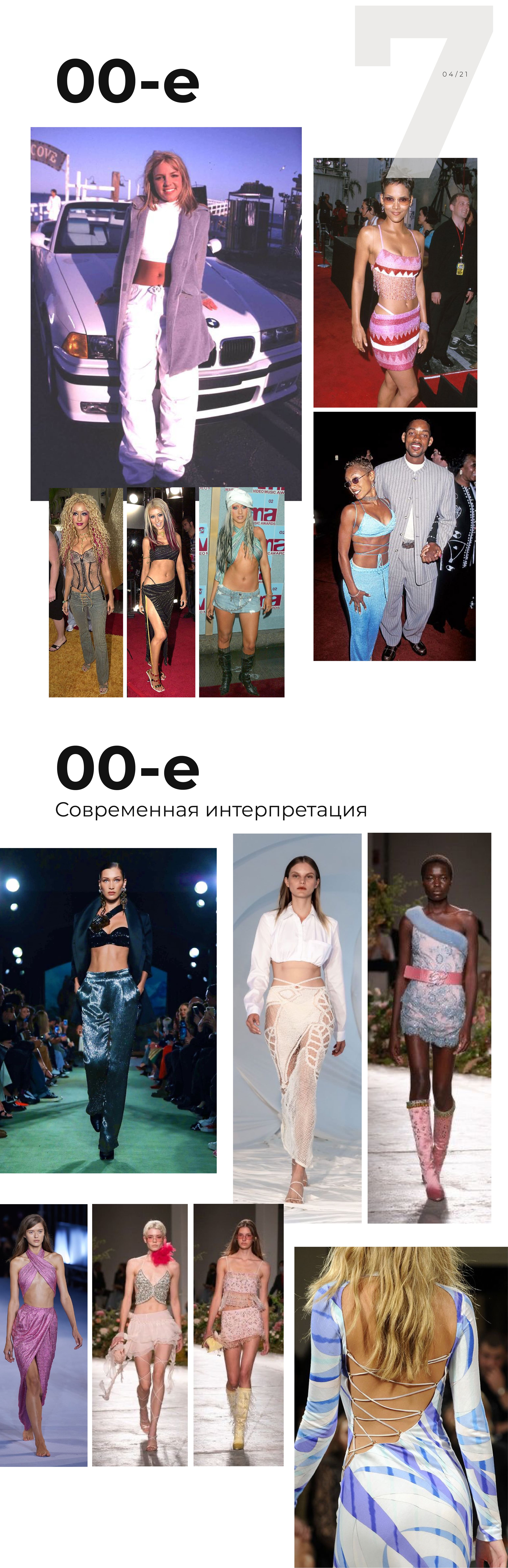 Нулевые — это время поп-звезд и ярких селебрити. Они показывали нам максимум тела, надевали украшения на пояс, носили платки, завязанные на манер банданы, обтекаемые по форме очки, низкую талию, джинсовые мини-юбки и сумки-багеты.