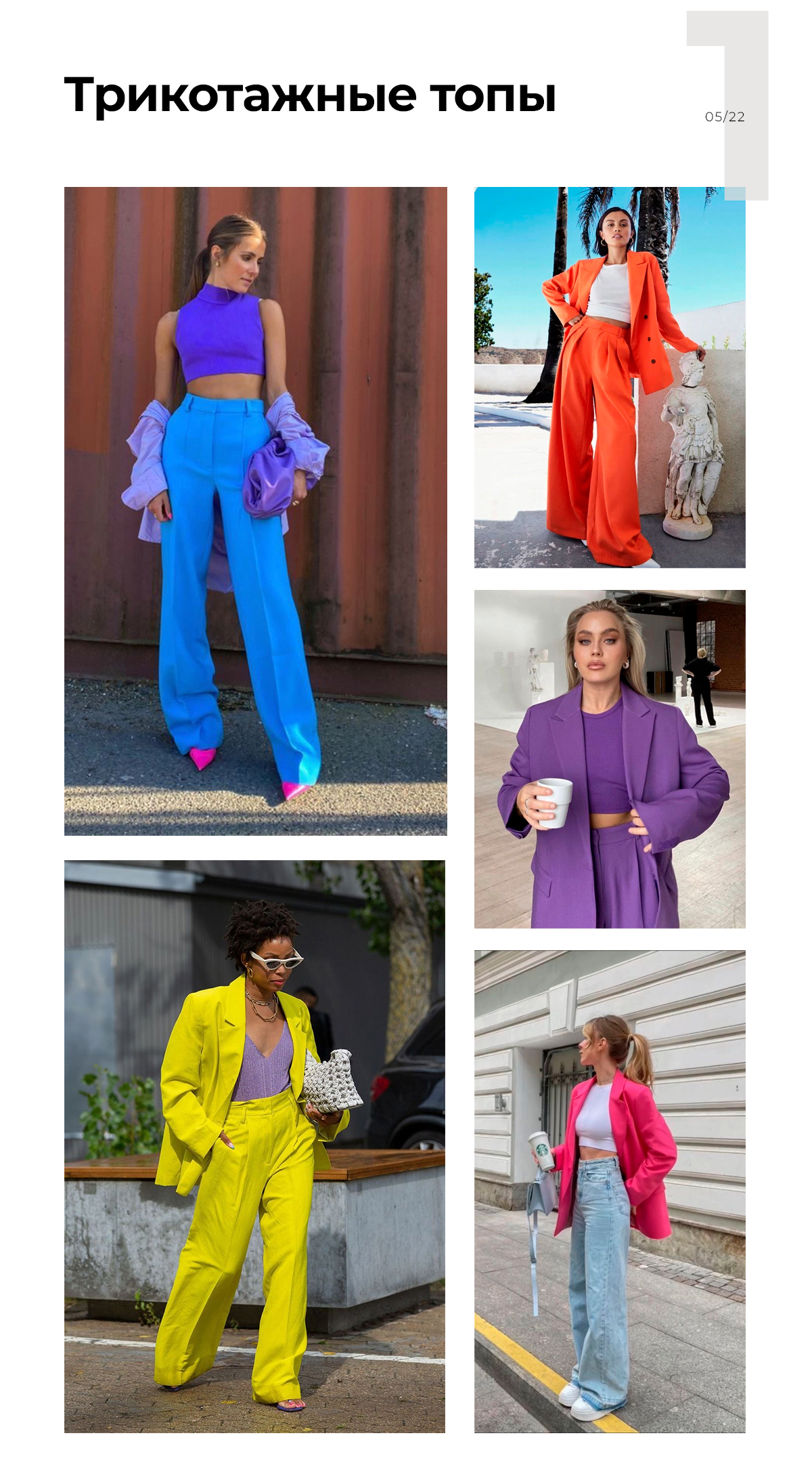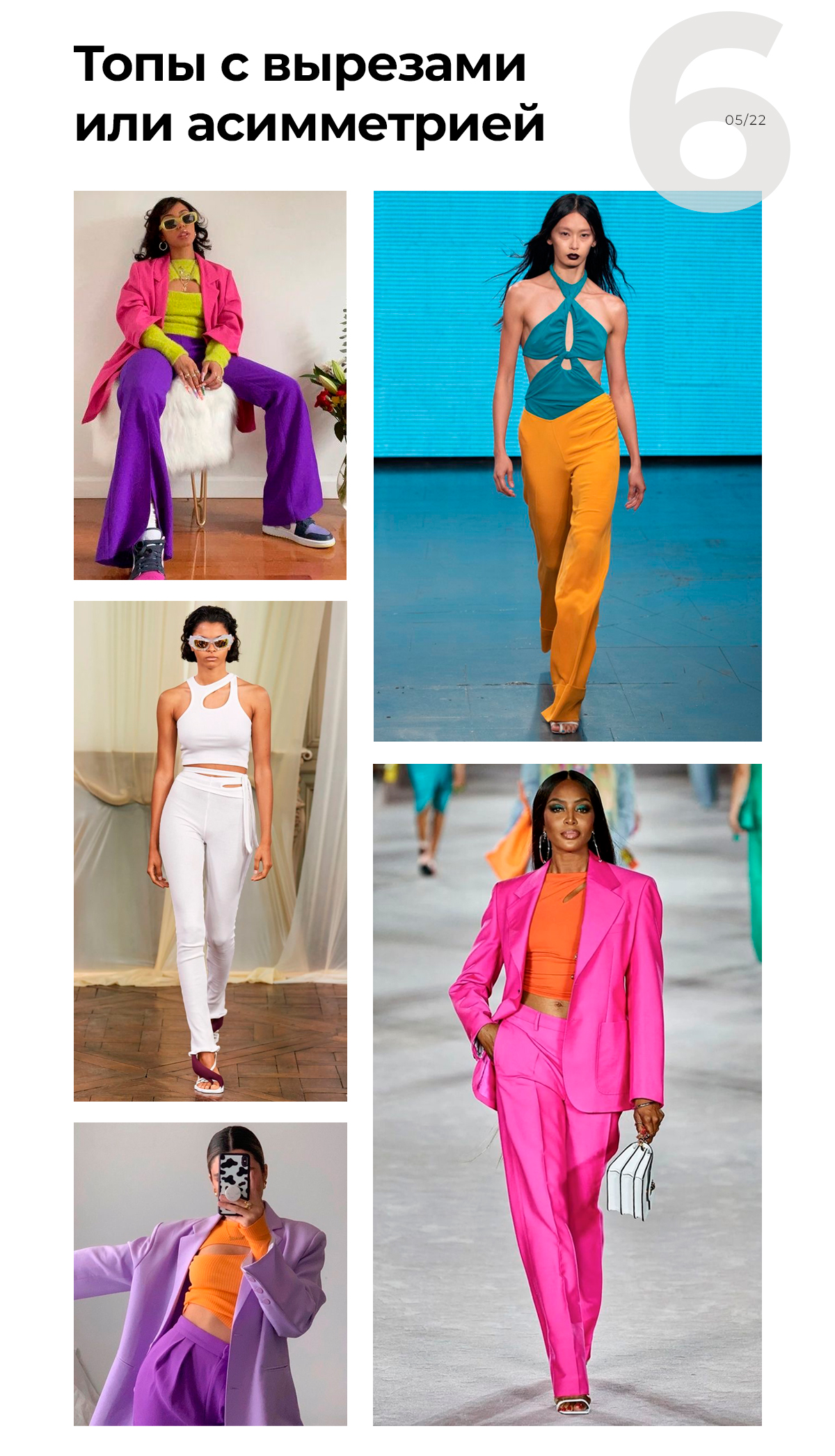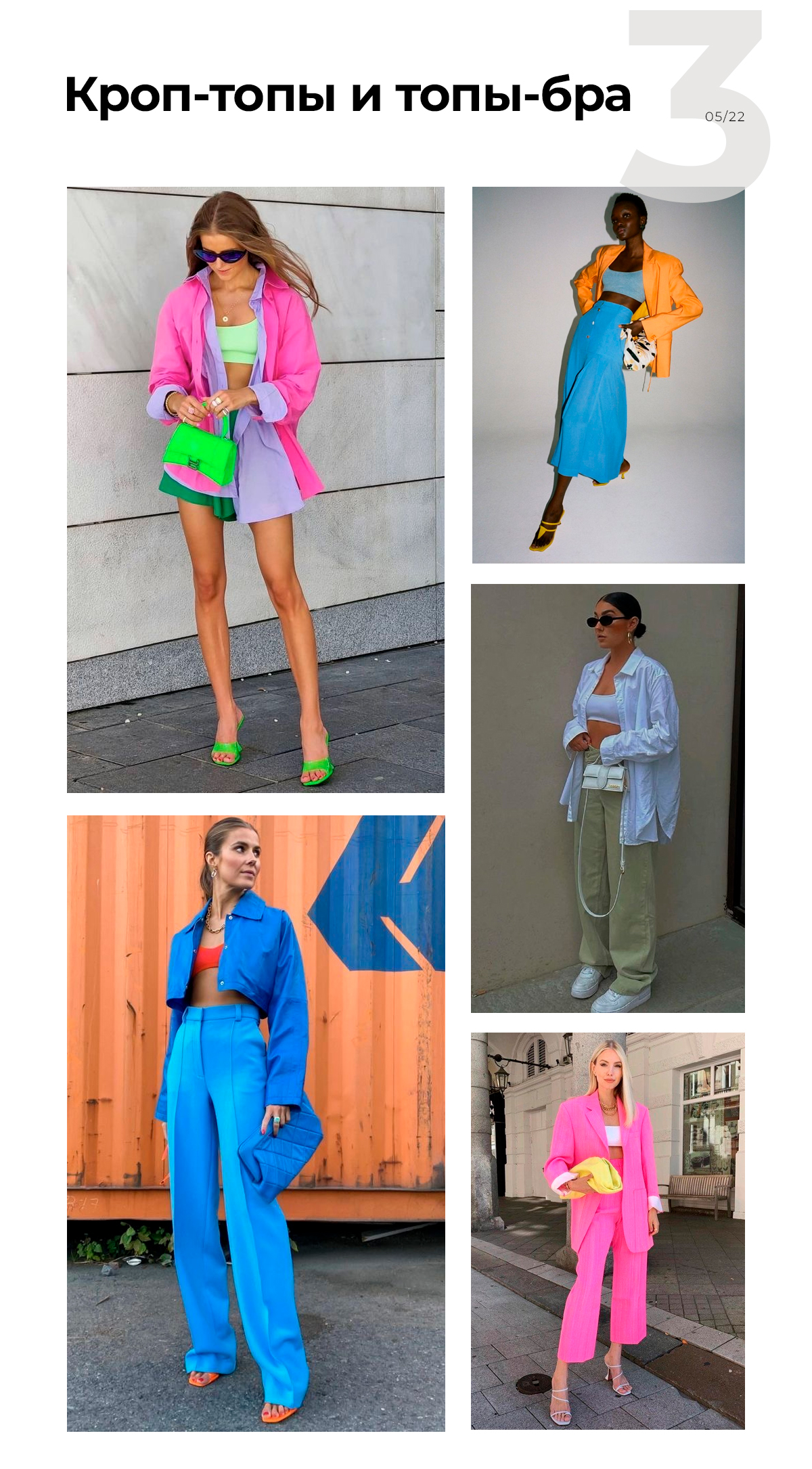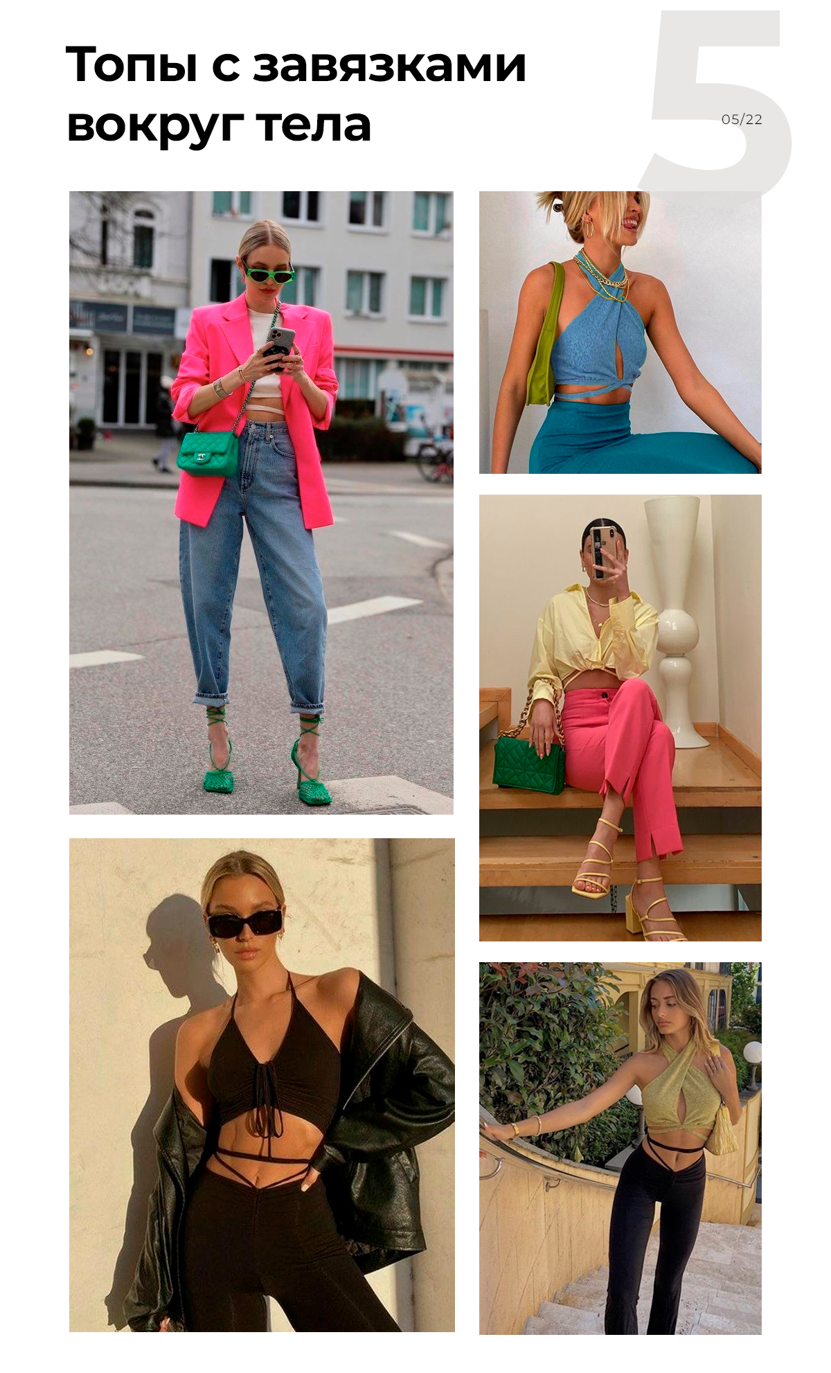Как видите, принцип сочетания с другими вещами у всех топов примерно один. Самый простой способ внедрить их в гардероб — добавить базовую актуальную вещь расслабленного стиля. И не нужны никакие футболки! Хотя и от них не стоит избавляться — только разбавить.