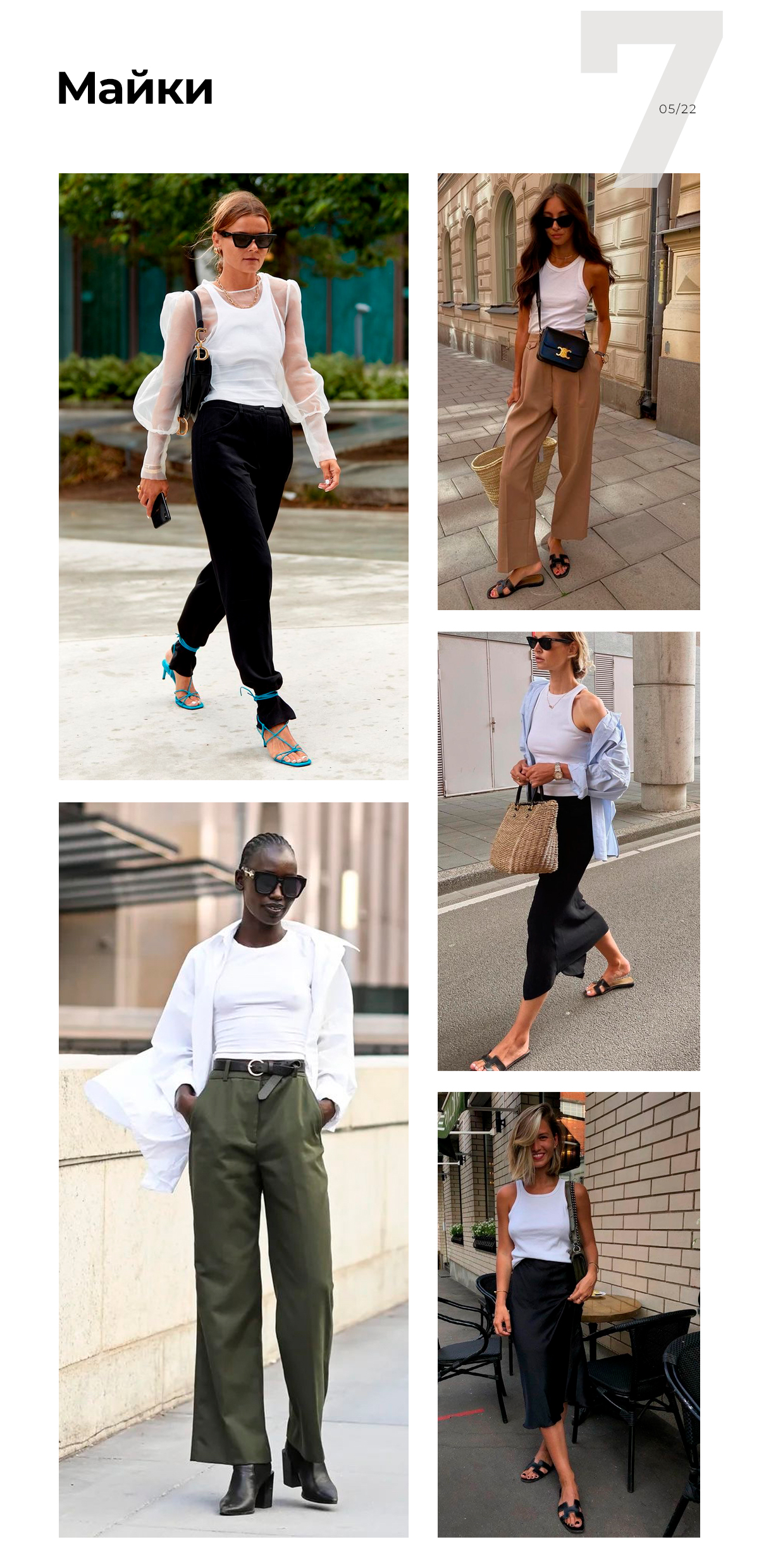 Ну и нельзя обойти самый жаркий тренд лета 2022 — майки. Обычные майки, которые мы раньше надевали как нательное белье. Просто, удобно и hot по нынешним меркам. :)