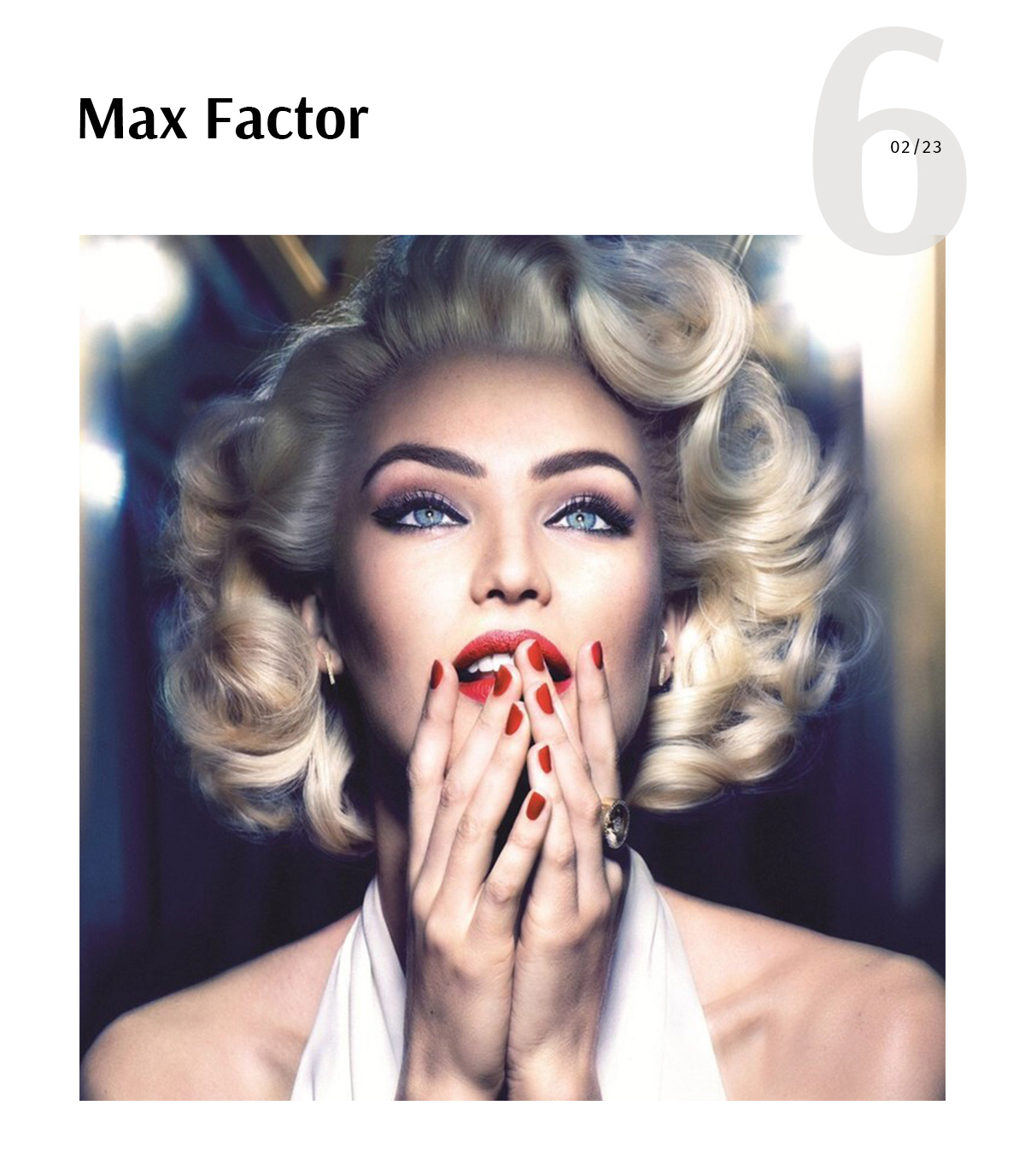 Образ Мэрилин Монро настолько известный, что актриса становилась лицом рекламных кампаний даже после того, как ее не стало. В 2015 году компания Max Factor выбрала Мэрилин своим амбассадором. Для съемок преображали модель Кэндис Свейнпол.