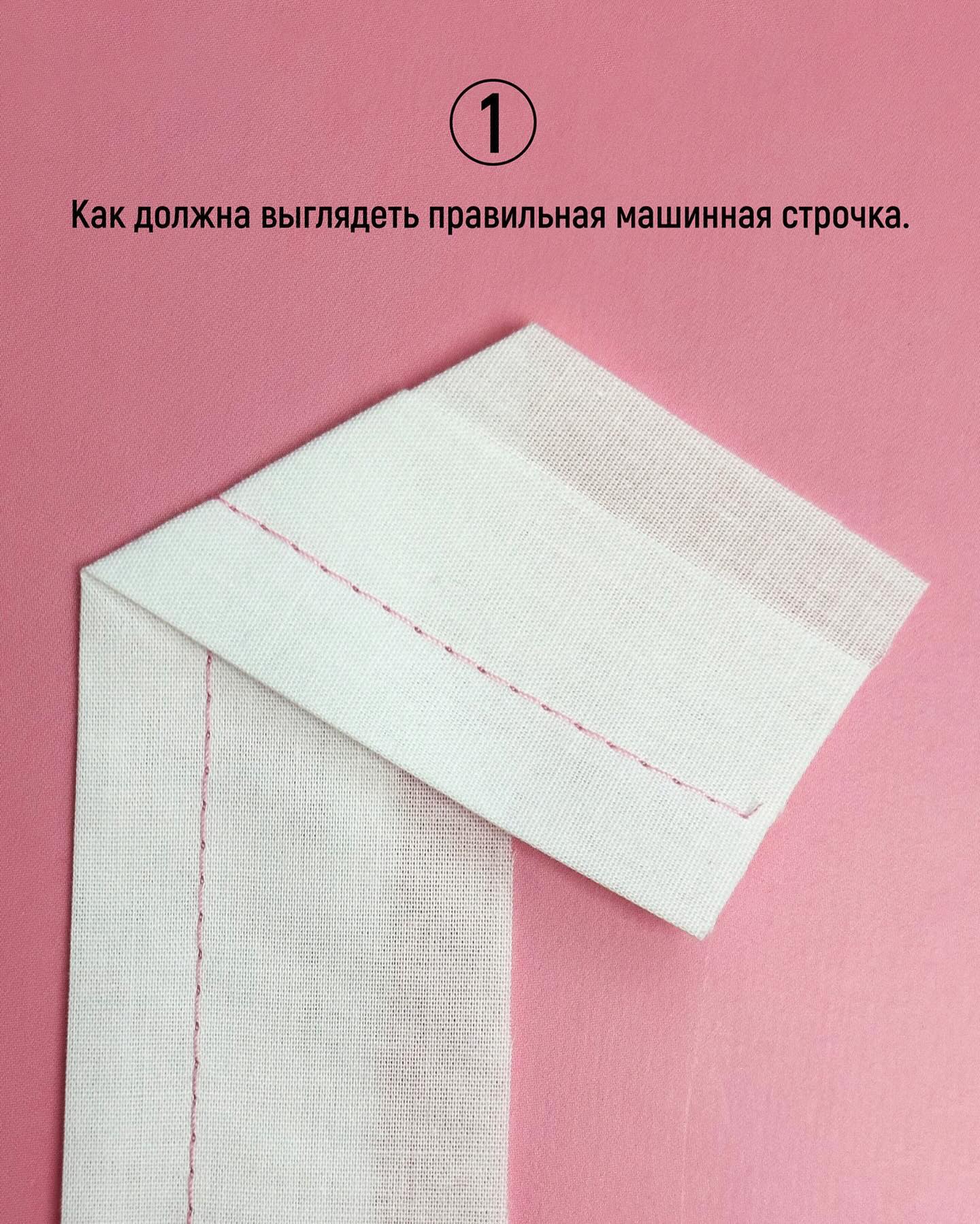Правильная машинная строчка должна выглядеть последовательной и состоять из повторяющихся и однородных стежков, переплетение которых остается между слоями ткани и не выглядывает ни с одной из сторон.