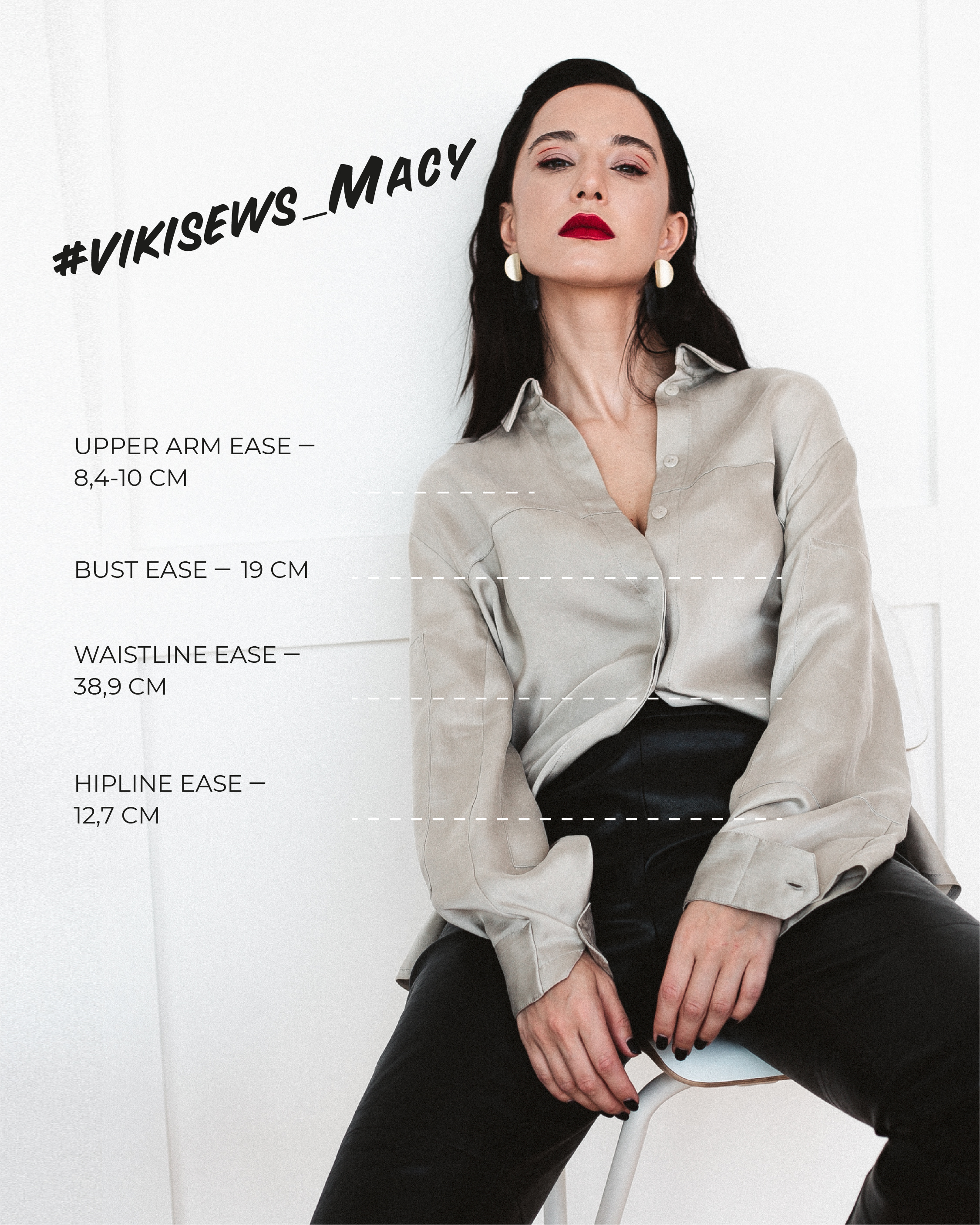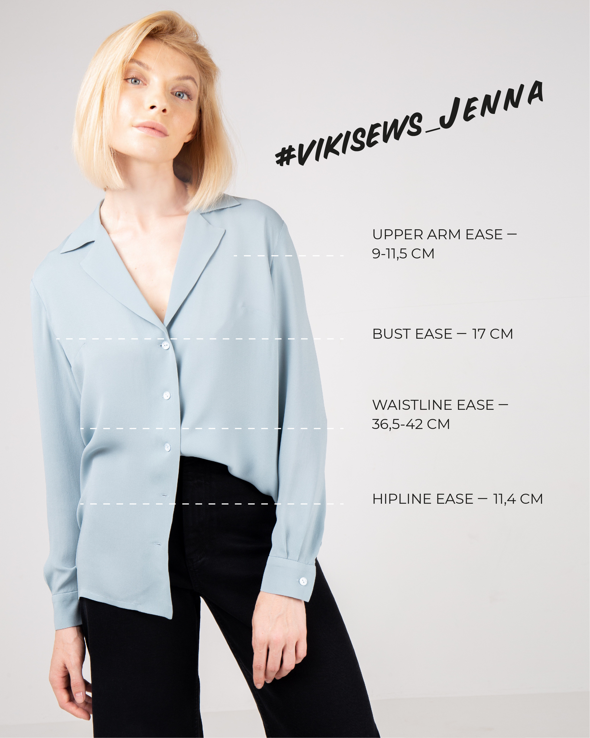 When you choose your size of Vikisews patterns it is important not only to check your measurements but also to pay close attention to the ease allowance. When you have the intended ease, the garment won’t be too loose or too tight, and you’ll get a piece that looks exactly as it was meant in the design.