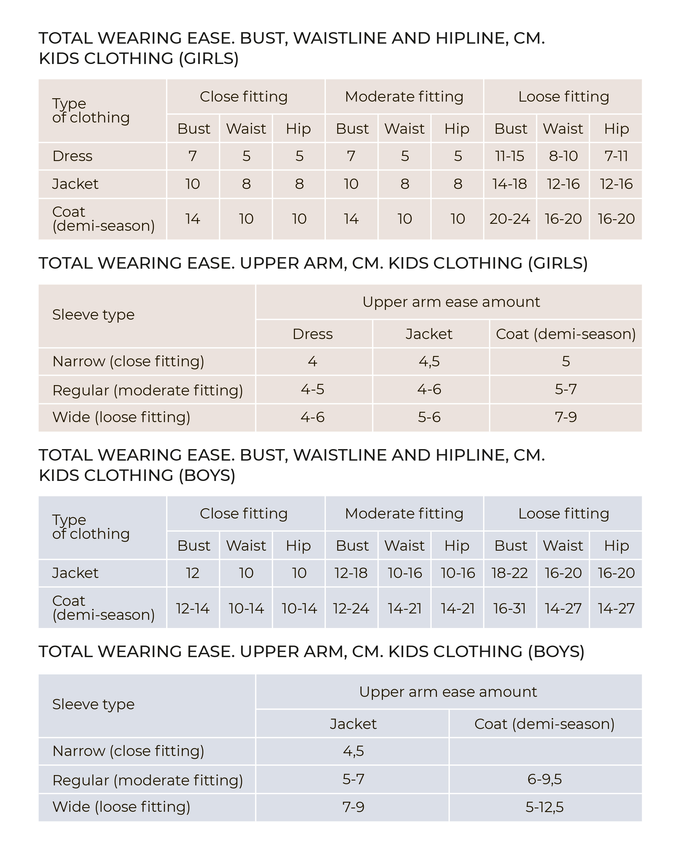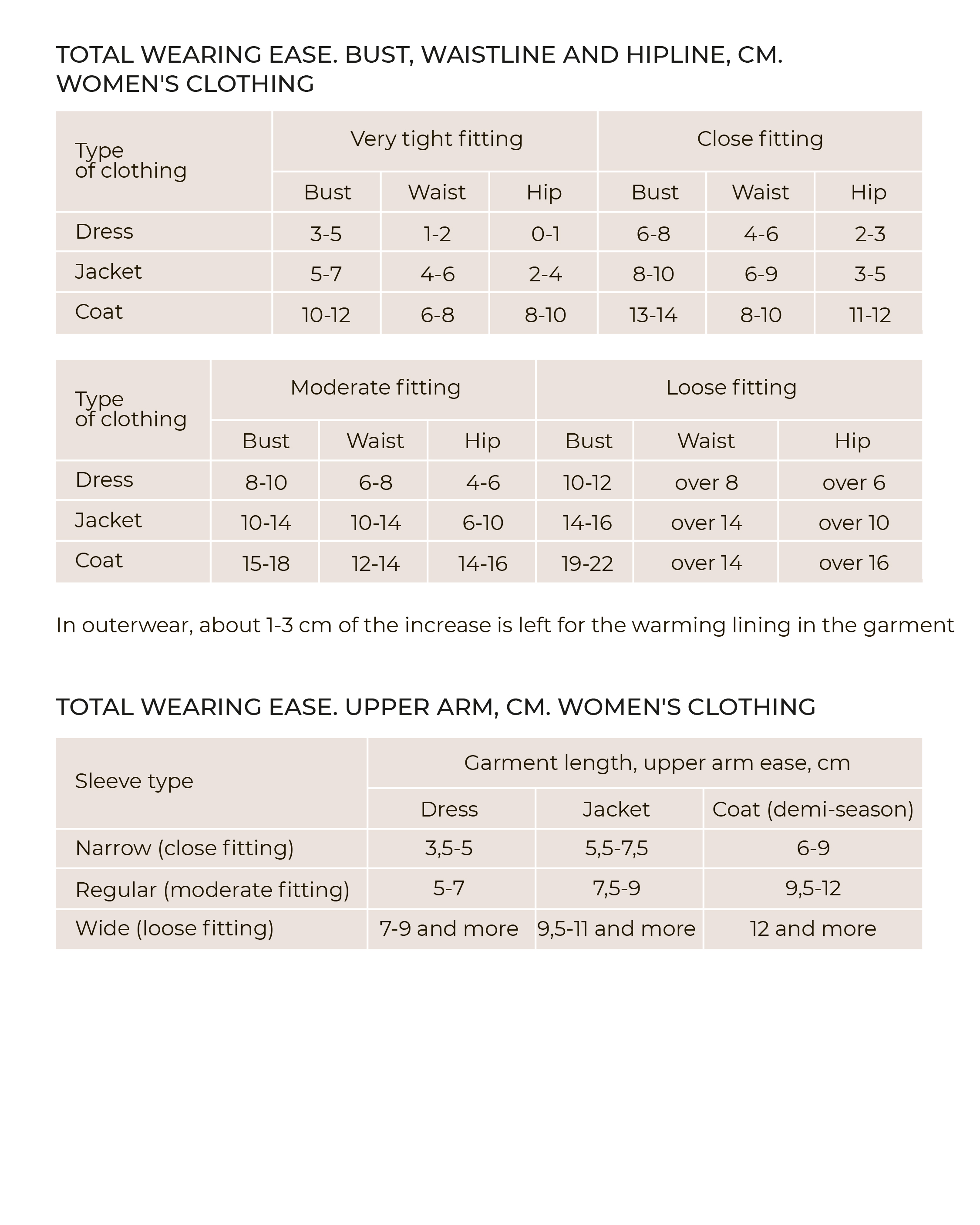 Ease allowance is the difference between your measurements and the real width of the garment. For example, bust circumference 80 cm + bust circumference ease of 8.5 cm = garment width at bust level of 88.5 cm. The bigger the ease, the wider the garment.