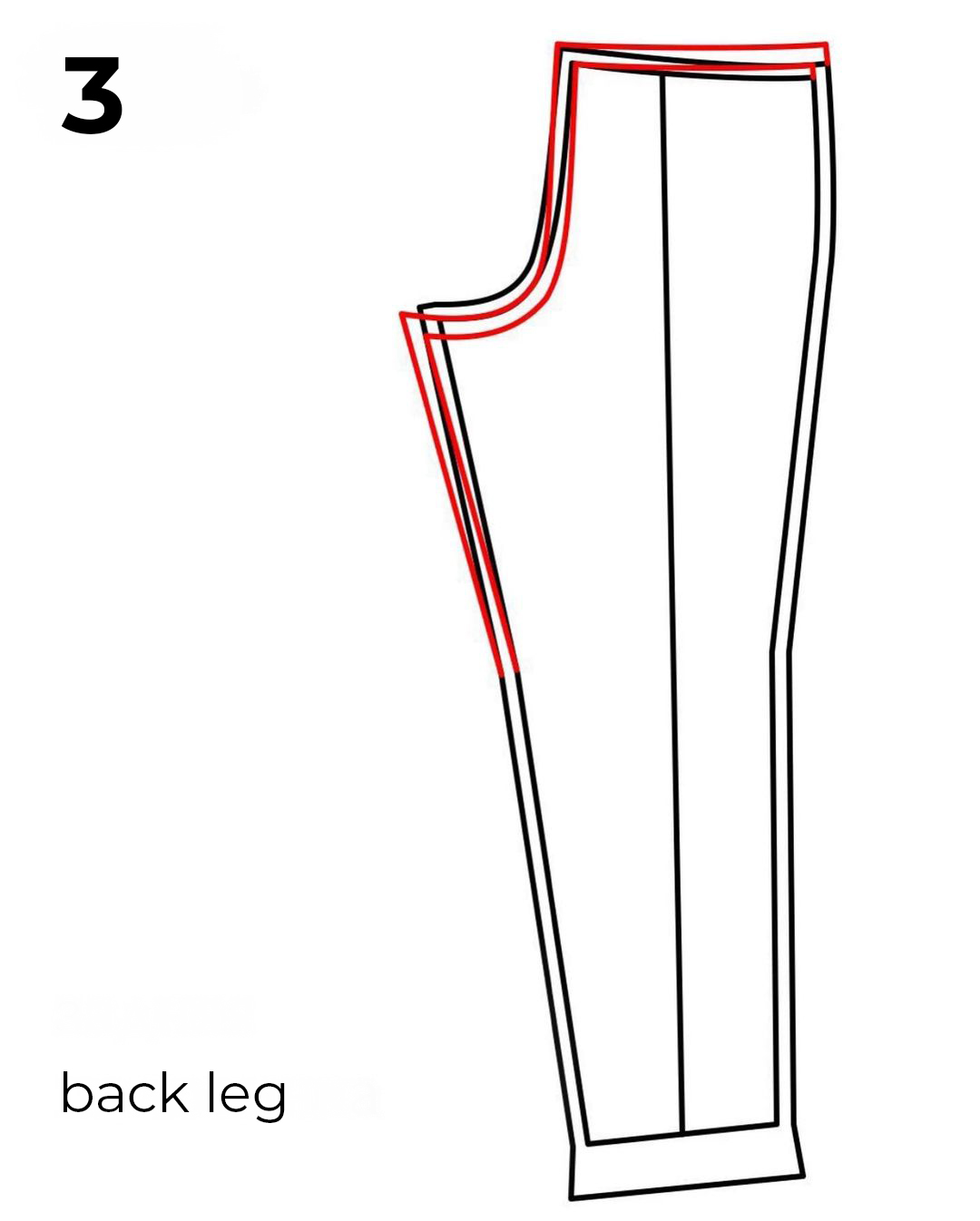 - Drop the back crotch edge by the size of the back drag line. When you do the fitting, pin the fold and measure its width – this is the number you need to deepen the back crotch.