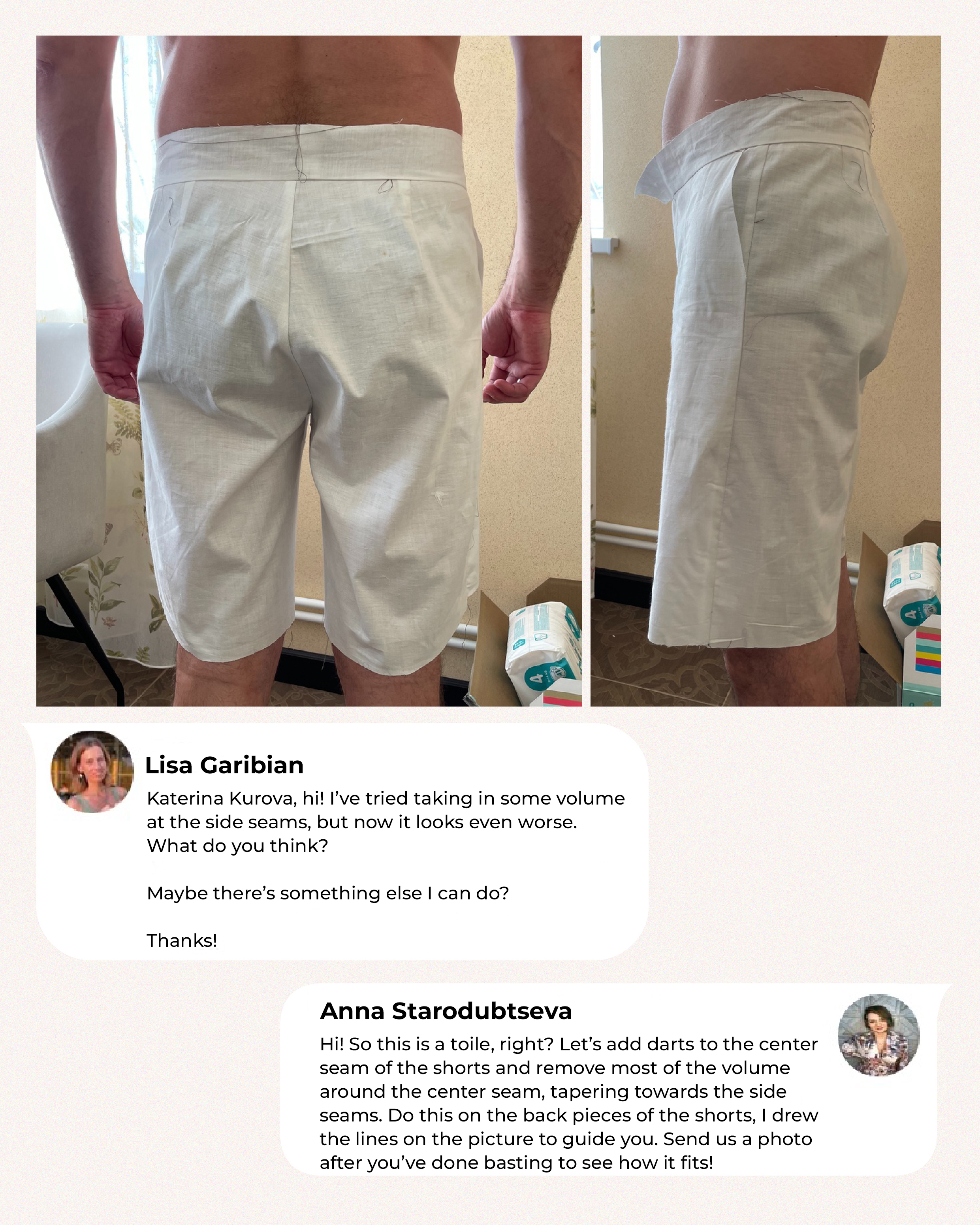 One of our customers sent us a photo of a shorts toile and asked why there was so much excess fabric in the back and how she could fix it.