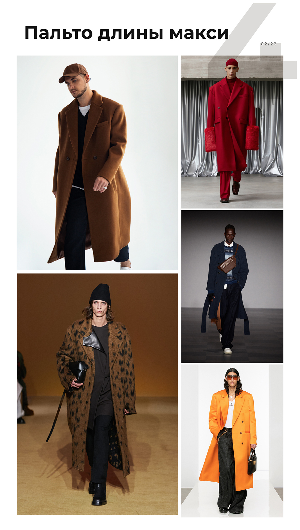 Пальто длины макси — тренд для всех. Оно может быть очень объемным или более силуэтным, как у Prada, но длина макси всегда. Цвет любой: нейтральные оттенки, яркие однотонные или акцентный принт. Кому-то понравится вариант в духе романтизма XIX века с меховой оторочкой.