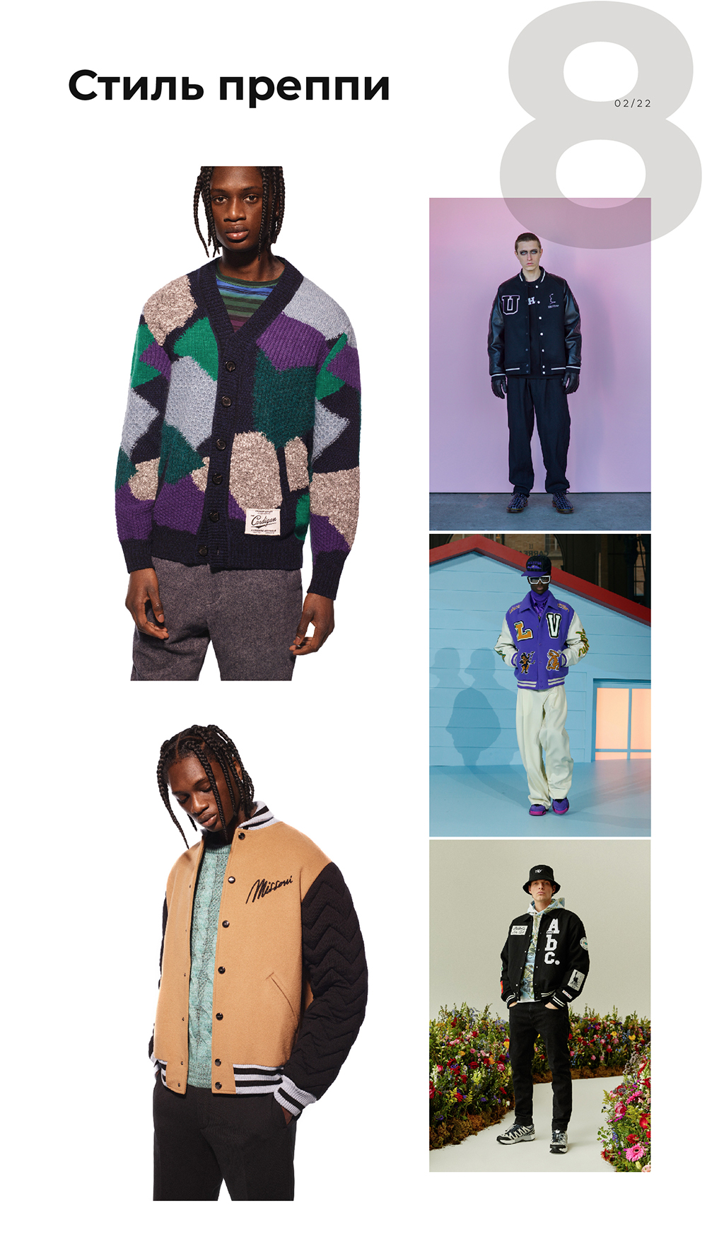 Преппи (от англ. preparatory — «подготовительный») — стиль, в котором за основу взята форма престижных частных школ. Здесь бомберы с эмблемами, береты и трикотажные жилетки.
