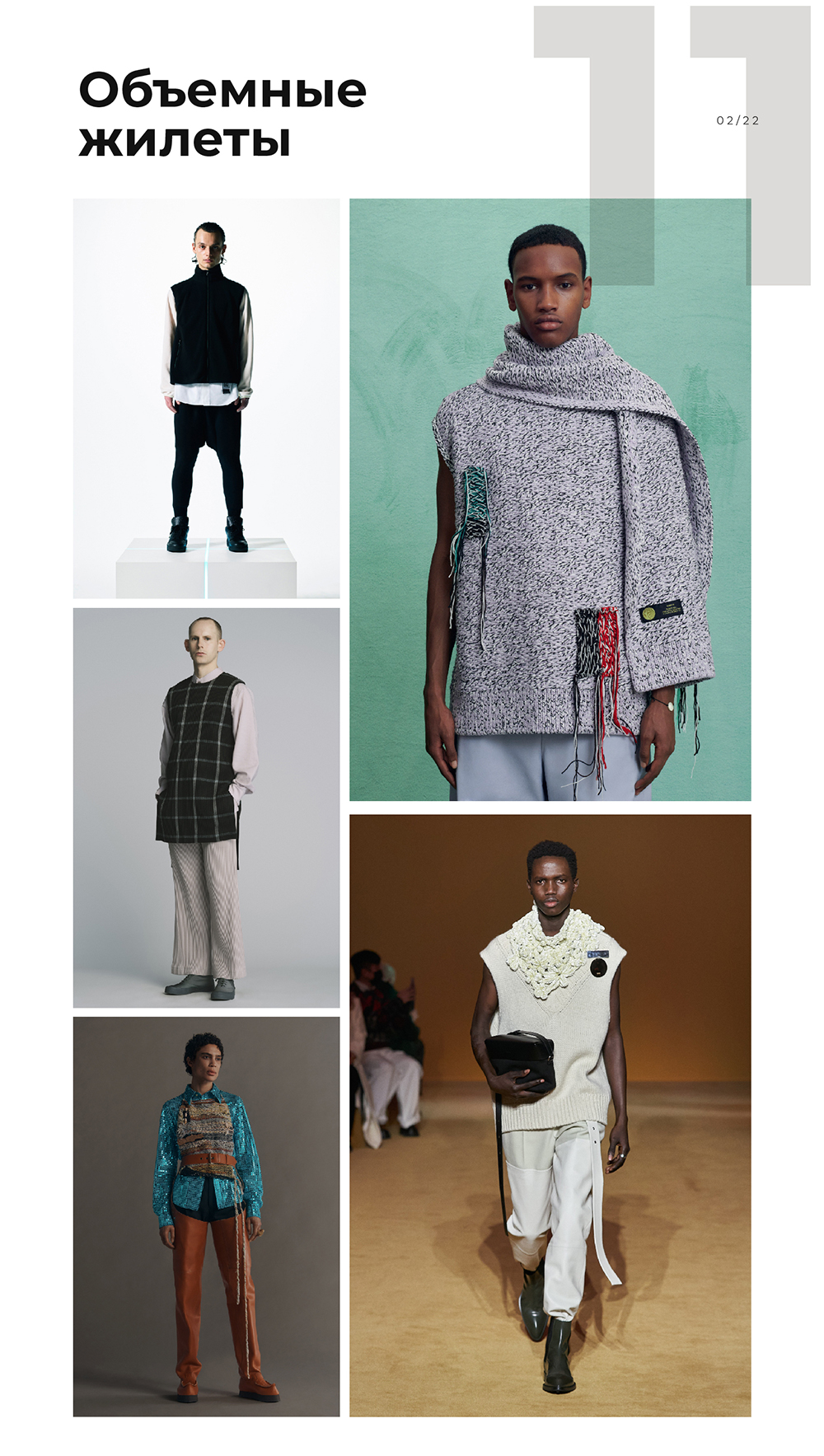 Трикотажные или стеганые объемные жилеты предлагают носить как отдельную вещь или второй слой. Миксовать можно как с рубашками, так и со спортивными вещами.