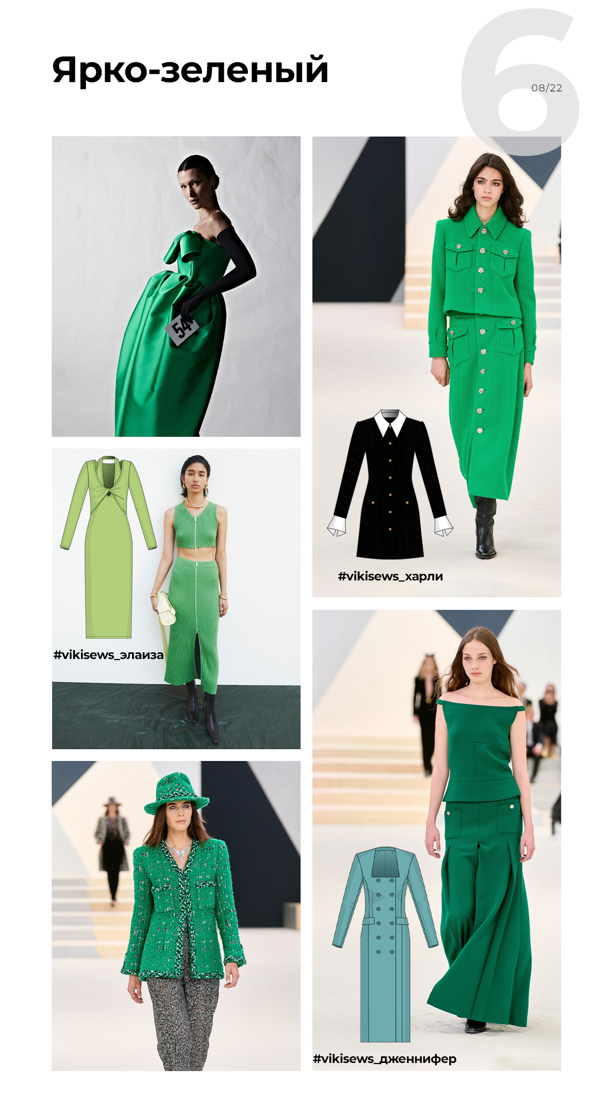 Ярко-зеленый тоже все еще с нами и не собирается никуда пропадать. Он был у многих — от Chanel до Balenciaga.