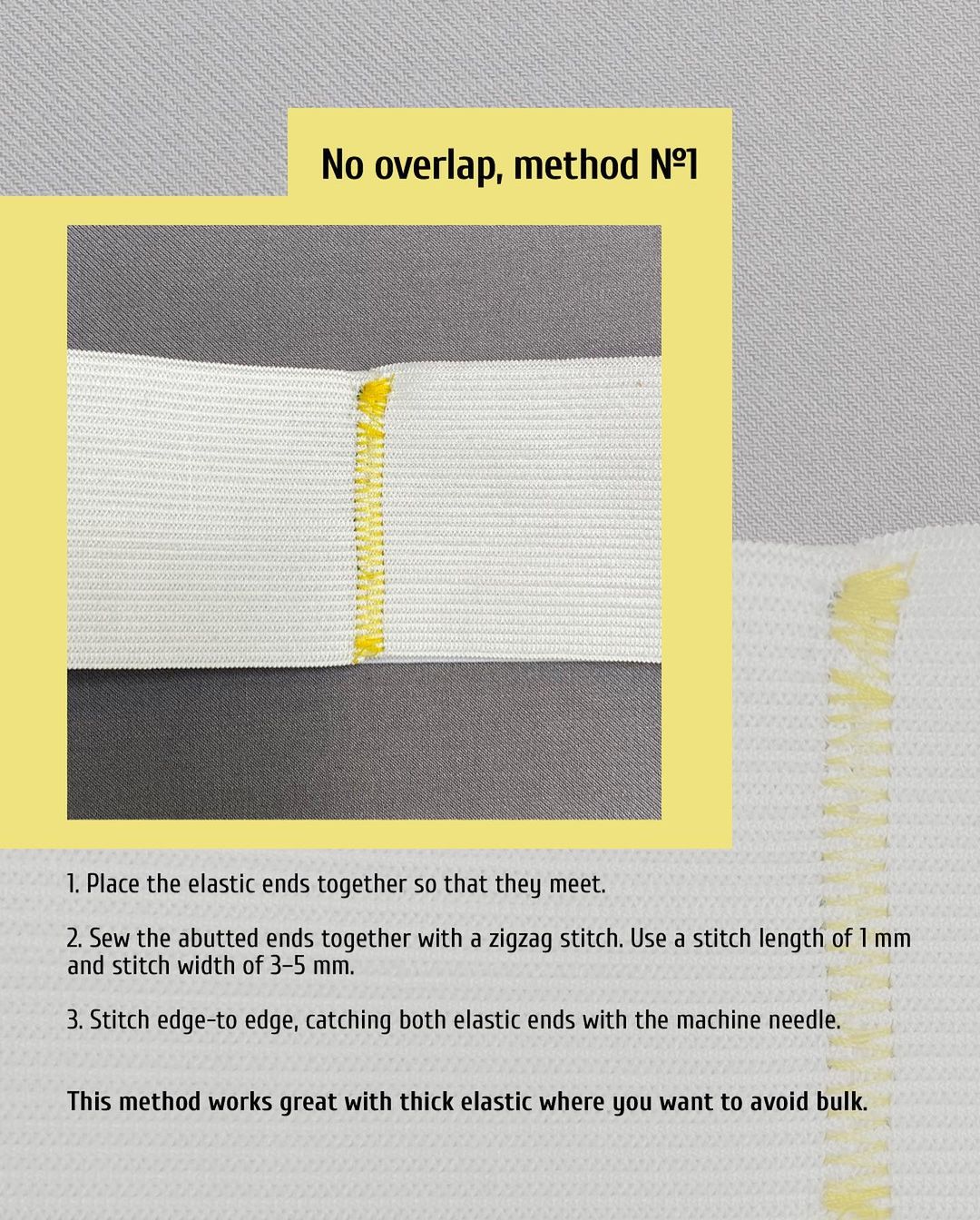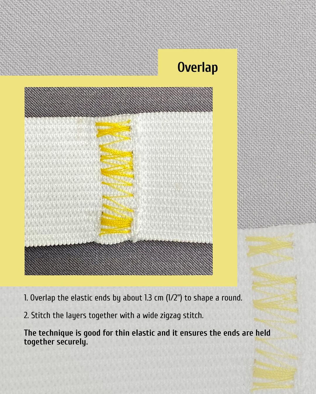 The technique is good for thin elastic and it ensures the ends are held together securely.