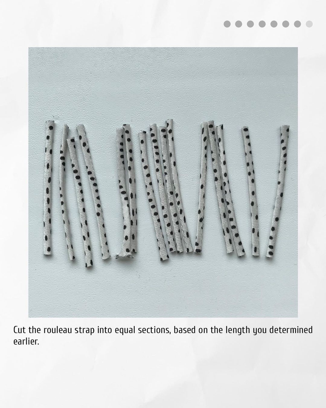 6️. Cut the rouleau strap into equal sections, based on the length you determined earlier.