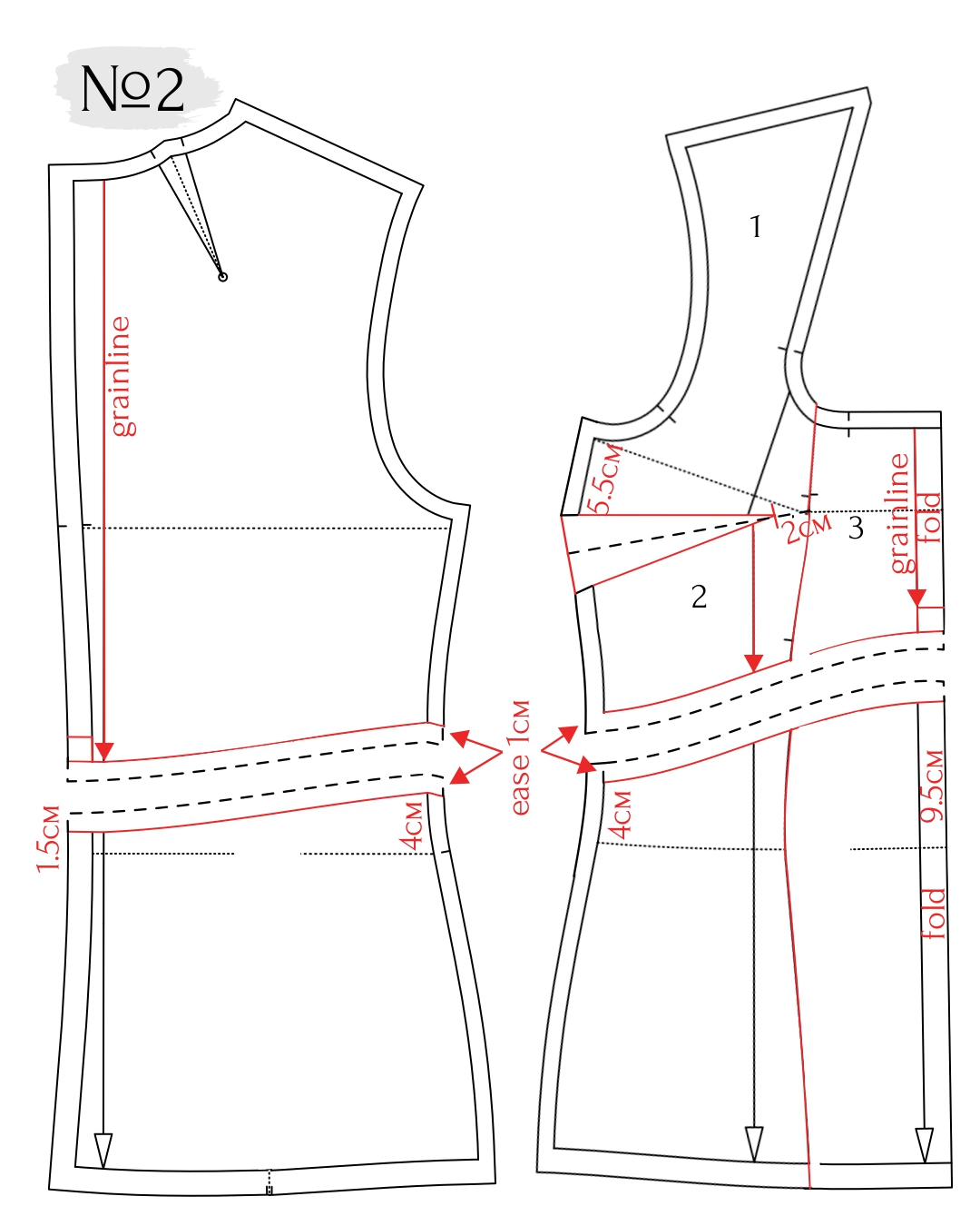 ▫️Add seam allowances to the empire waist seam line (1 cm above and below).