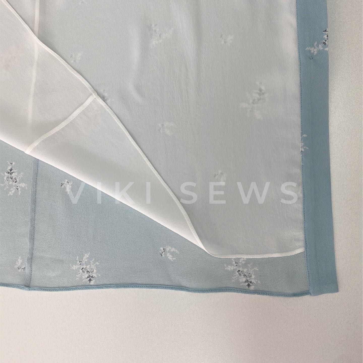 - Combine all of the pattern pieces together with a French seam. In the case of delicate fabrics, a French seam will look thinner and sleeker compared to a seam allowance finished by an overlocker. The width of all the seam allowance should be made the same — 5 mm.