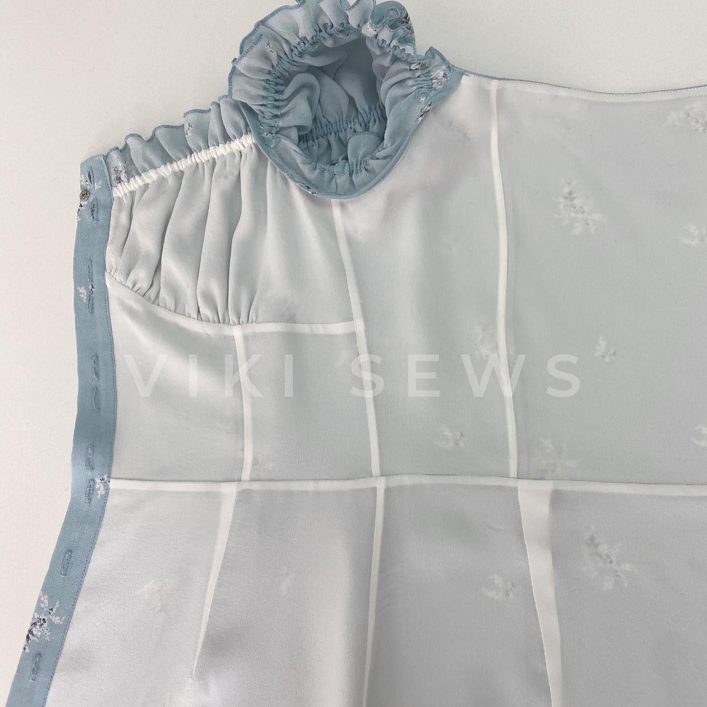 - Combine all of the pattern pieces together with a French seam. In the case of delicate fabrics, a French seam will look thinner and sleeker compared to a seam allowance finished by an overlocker. The width of all the seam allowance should be made the same — 5 mm.