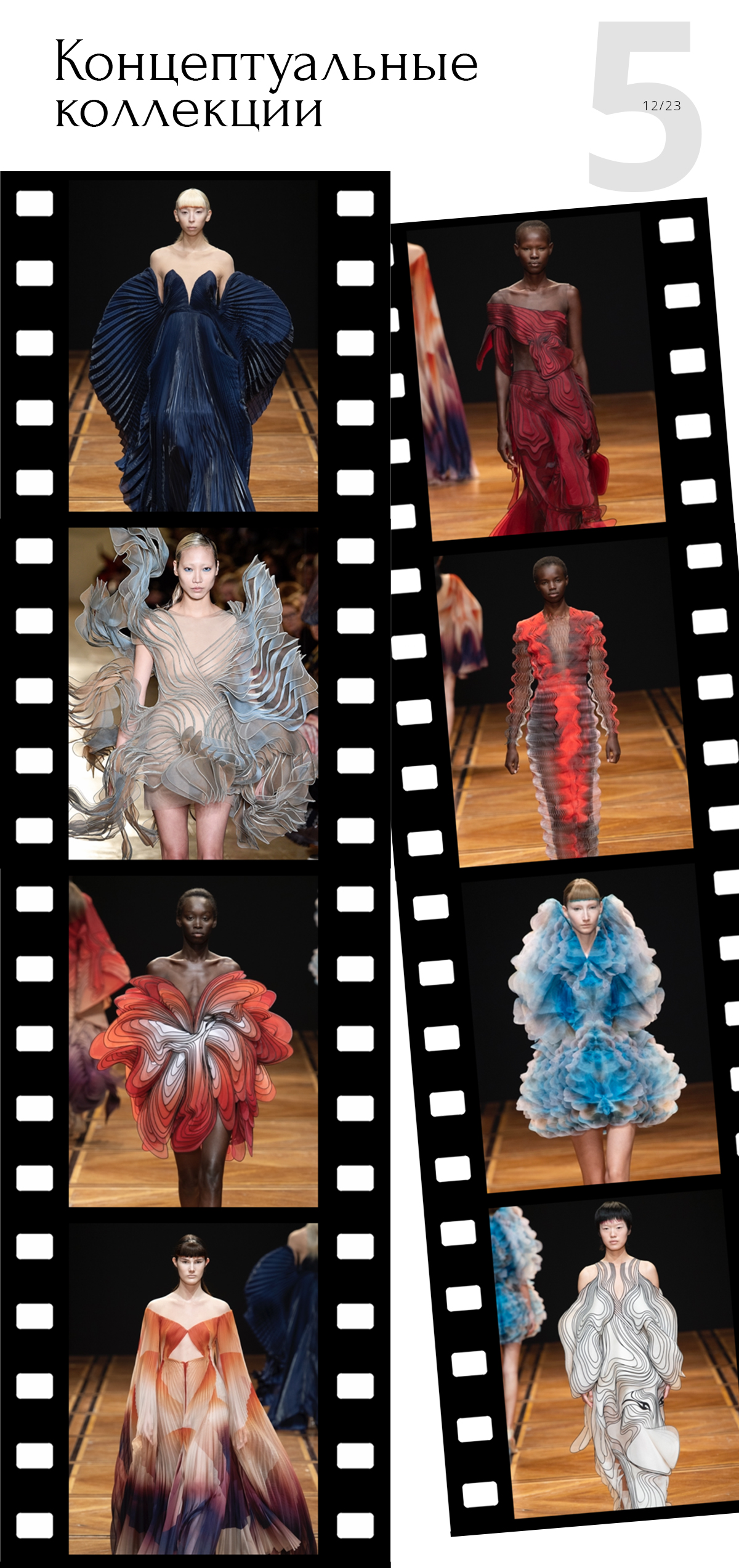 Iris Van Herpen создают коллекции в сегменте кутюр. Это необыкновенные, фантастические вещи, придуманные с использованием высоких технологий.
