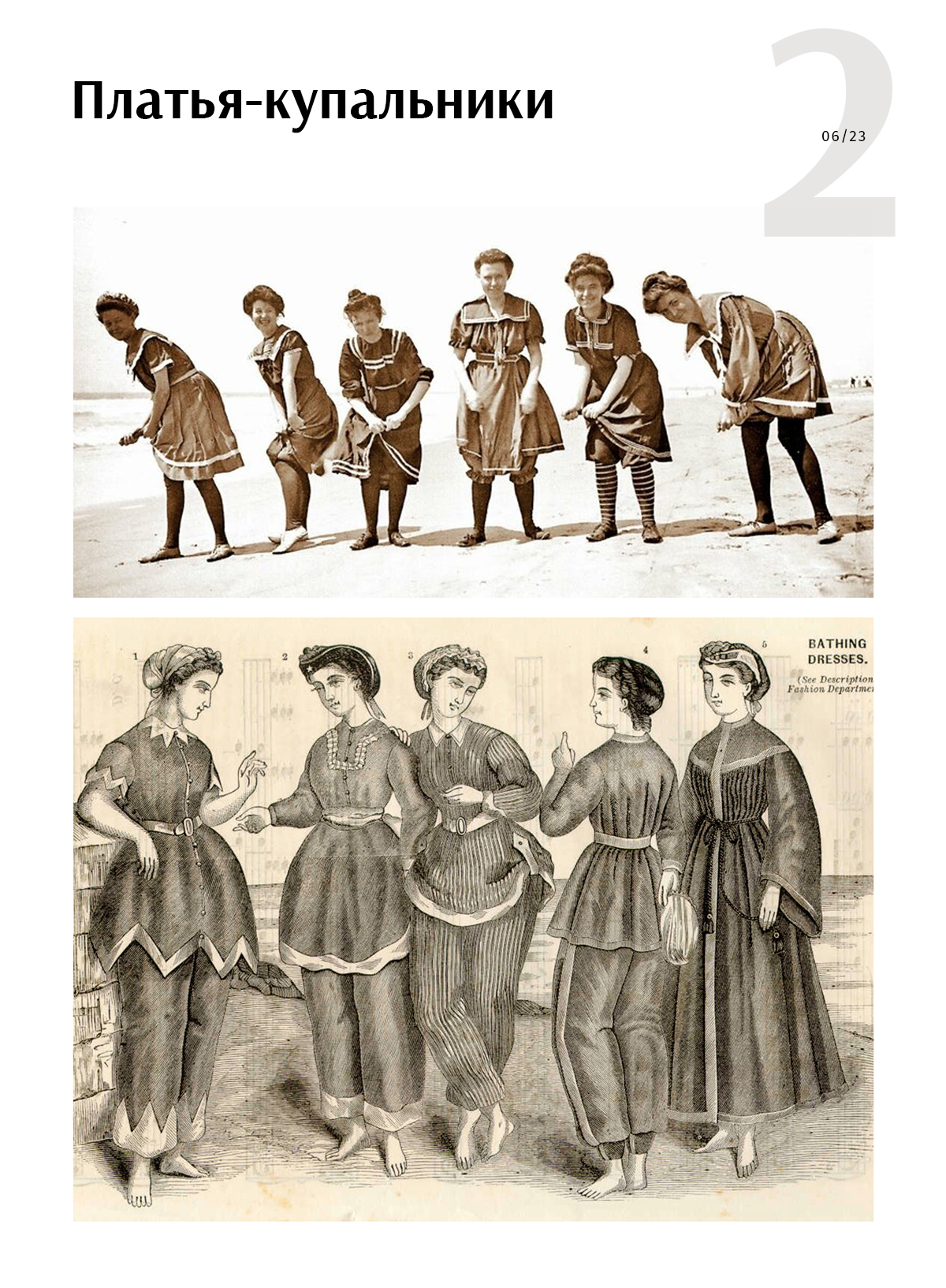 В 1907 году австралийская пловчиха и актриса Аннет Келлерман надела на свое выступление облегающий купальный костюм. Это был очень большой и конкретный вызов консервативным устоям общества. Купальник был закрытым, но вызвал такой резонанс, что ее арестовали за «непристойное поведение». После этого инцидента ограничения ослабили, и женщинам разрешалось надевать слитные купальники.
