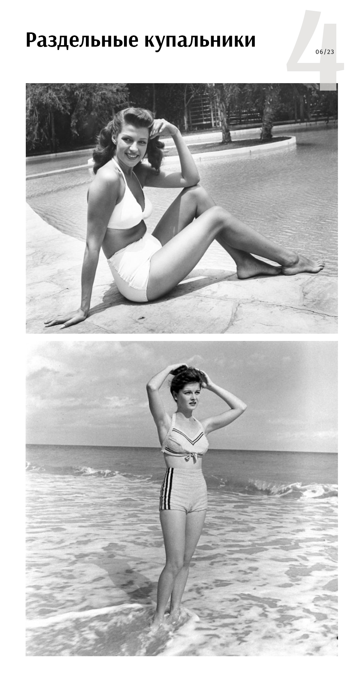 У вас же тоже жарко на улице и где-то совсем рядом будет отпуск? А может, вы просто ходите на пляж каждые выходные, потому что в городе есть море, озеро или река? И даже бассейн — прекрасное место для отдыха, где можно освежиться, почитать наш дайджест про историю бикини и показать свой новый купальник. Листайте!
