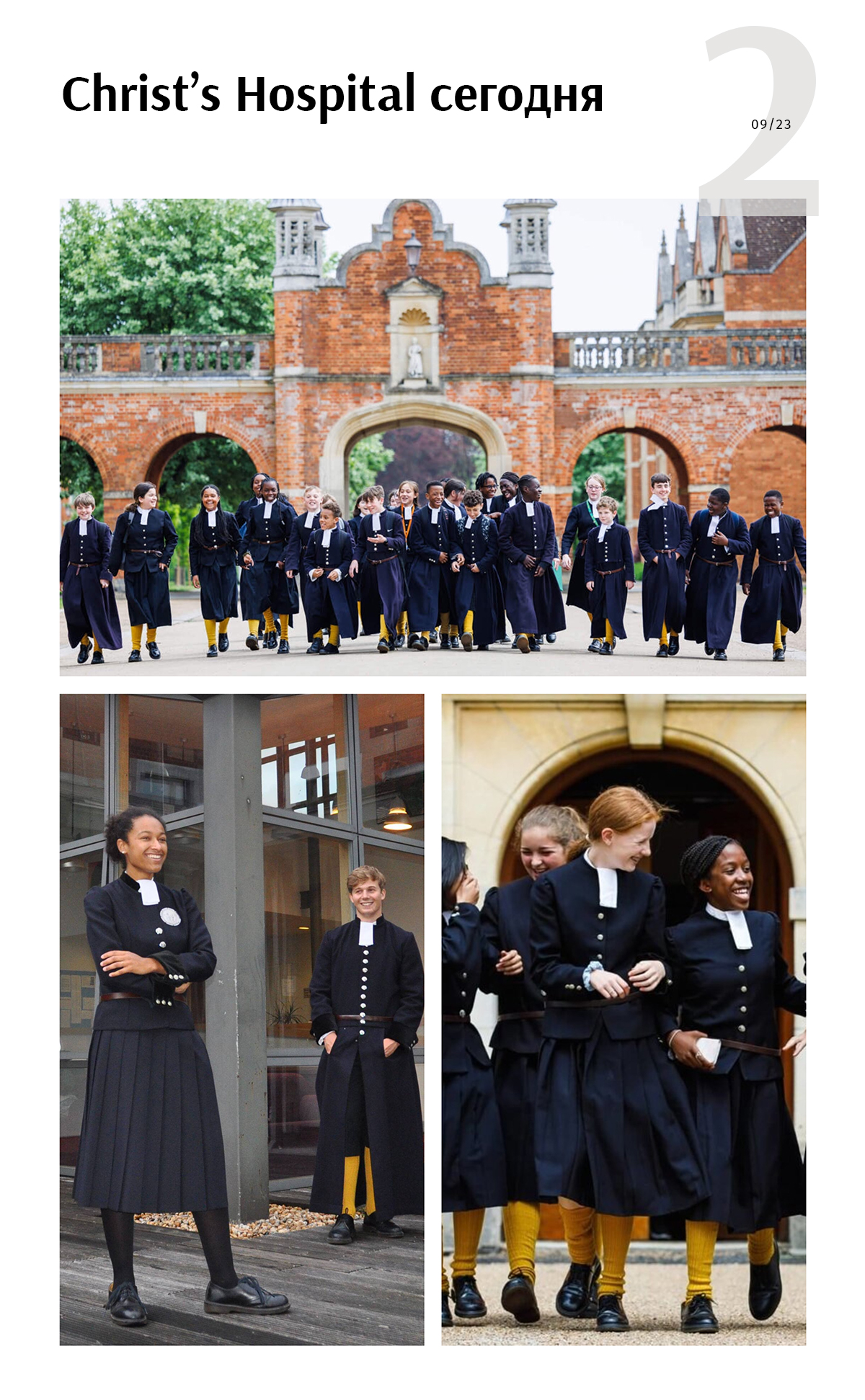 Изменился ли образ учеников Christ’s Hospital сегодня? Практически нет. За 460 лет работы поменялось лишь то, что теперь в этой школе учится элита, но дети все так же ходят в синих пальто и желтых гольфах. Кстати, фотографии оттуда наталкивают на мысль, что после летних каникул ученики возвращаются в школу на поезде, который уходит с платформы 9 и ¾, правда?