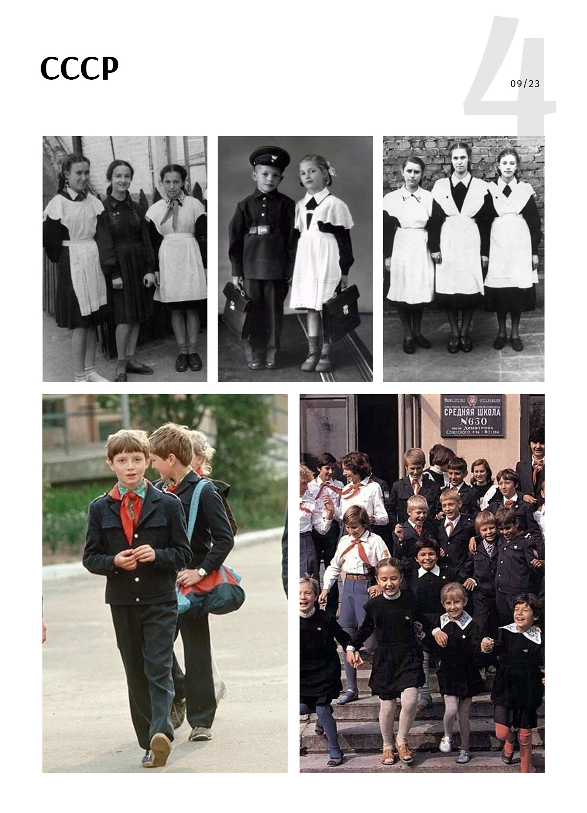 Тем не менее школьная форма достаточно быстро вернулась — в 1948 году, ведь задача показать одинаковость и равные возможности была все равно важной. Дизайн практически полностью скопировали с той, что была у гимназистов до революции.