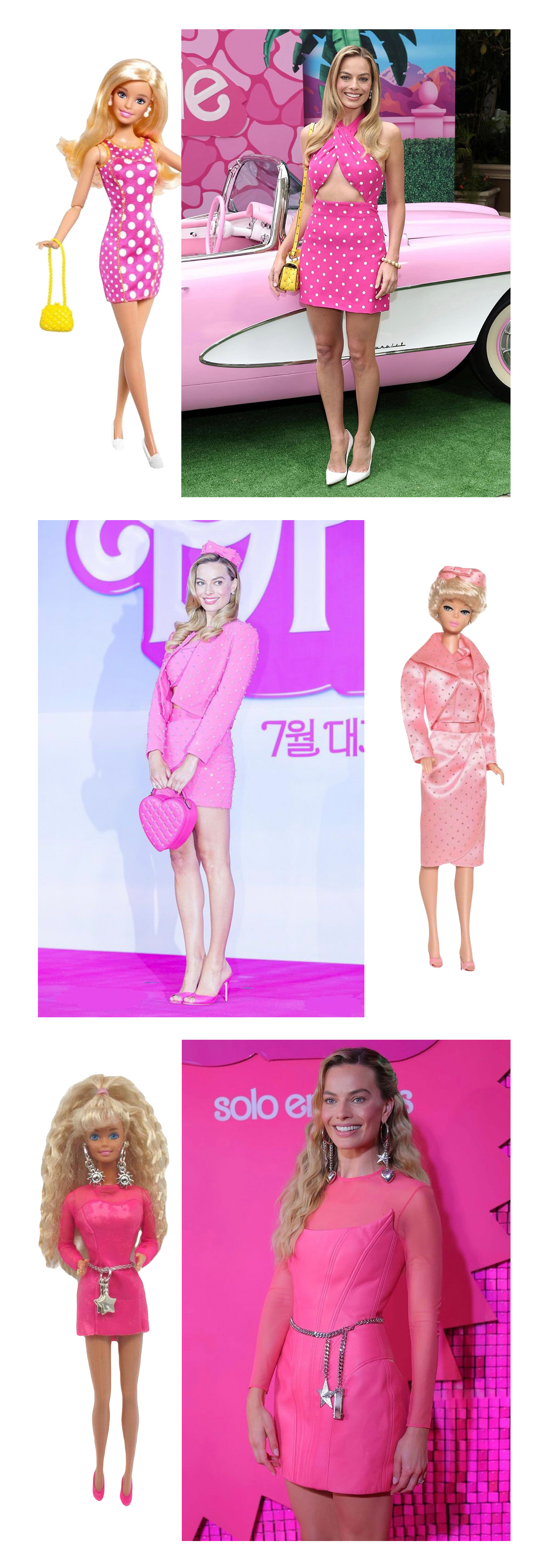 Have you seen how thought-through the “Barbie” movie campaign is? Whether you like the whole movie buzz or not, Margot Robbie’s outfits are fun and exciting to follow. She hasn’t been just sporting mild Barbiecore, she’s gone hardcore and repeated actual vintage Barbie outfits! Keep scrolling to take a look!