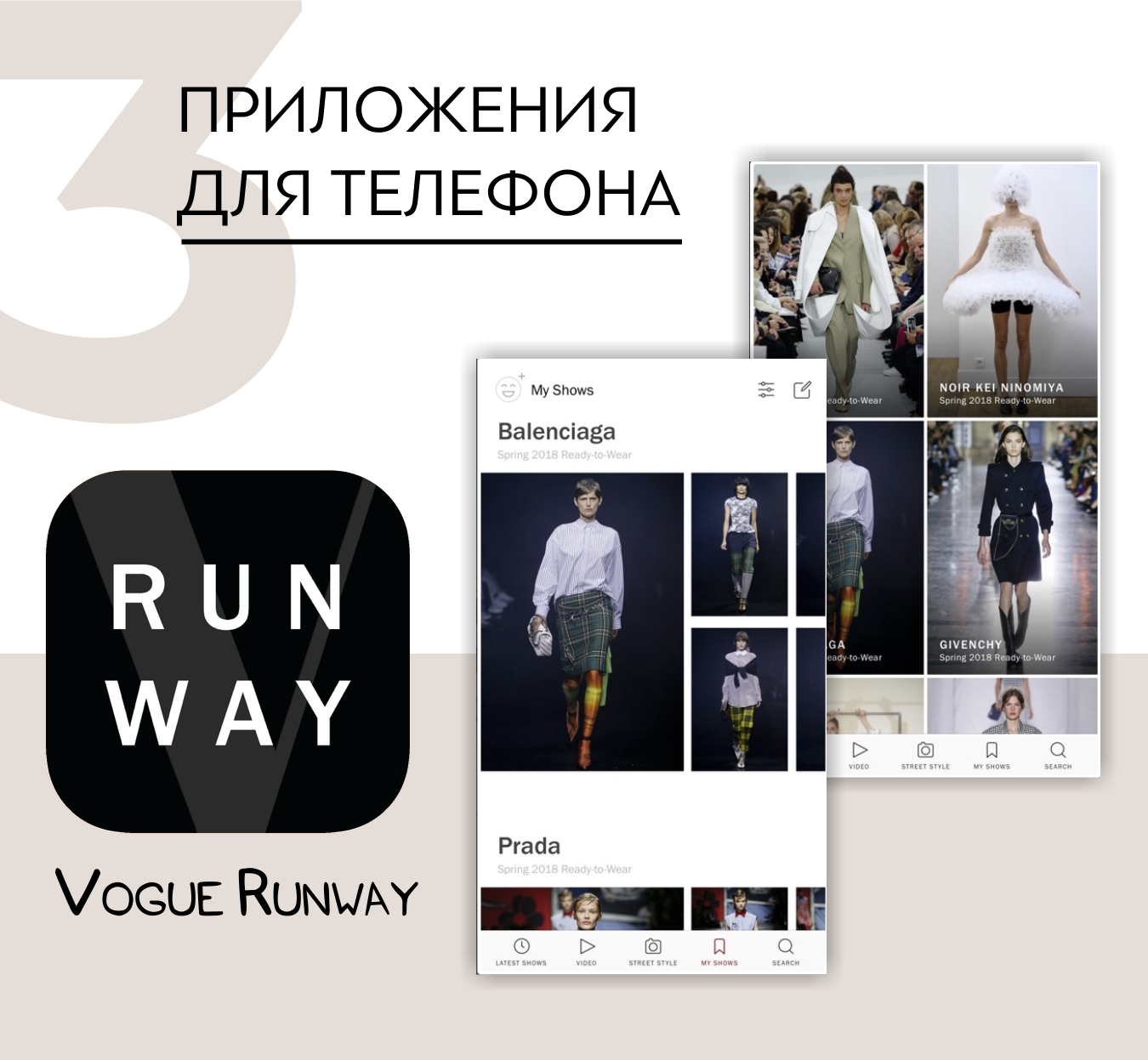 Установите себе на телефон приложение Vogue Runway и отслеживайте в нем все показы от архивных до самых свежих с удобной сортировкой по именам дизайнеров и годам. Так вы будете видеть, какие тренды появятся в ближайших сезонах.