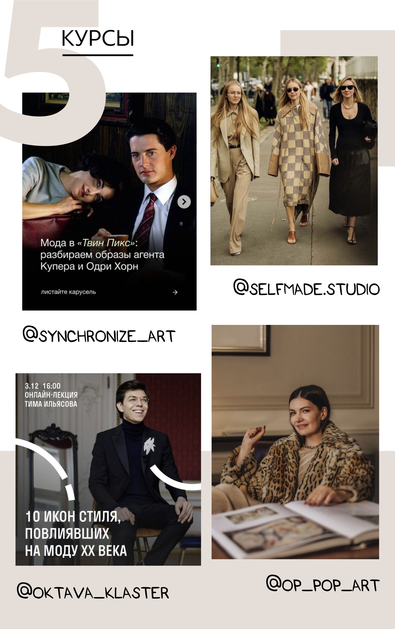 Selfmade.studio — помимо больших курсов здесь читают небольшие лекции о моде и стиле, часто проводят прямые эфиры. Тем, кто хочет разбираться в истории моды, рекомендуем посмотреть курс «Чистые стили».