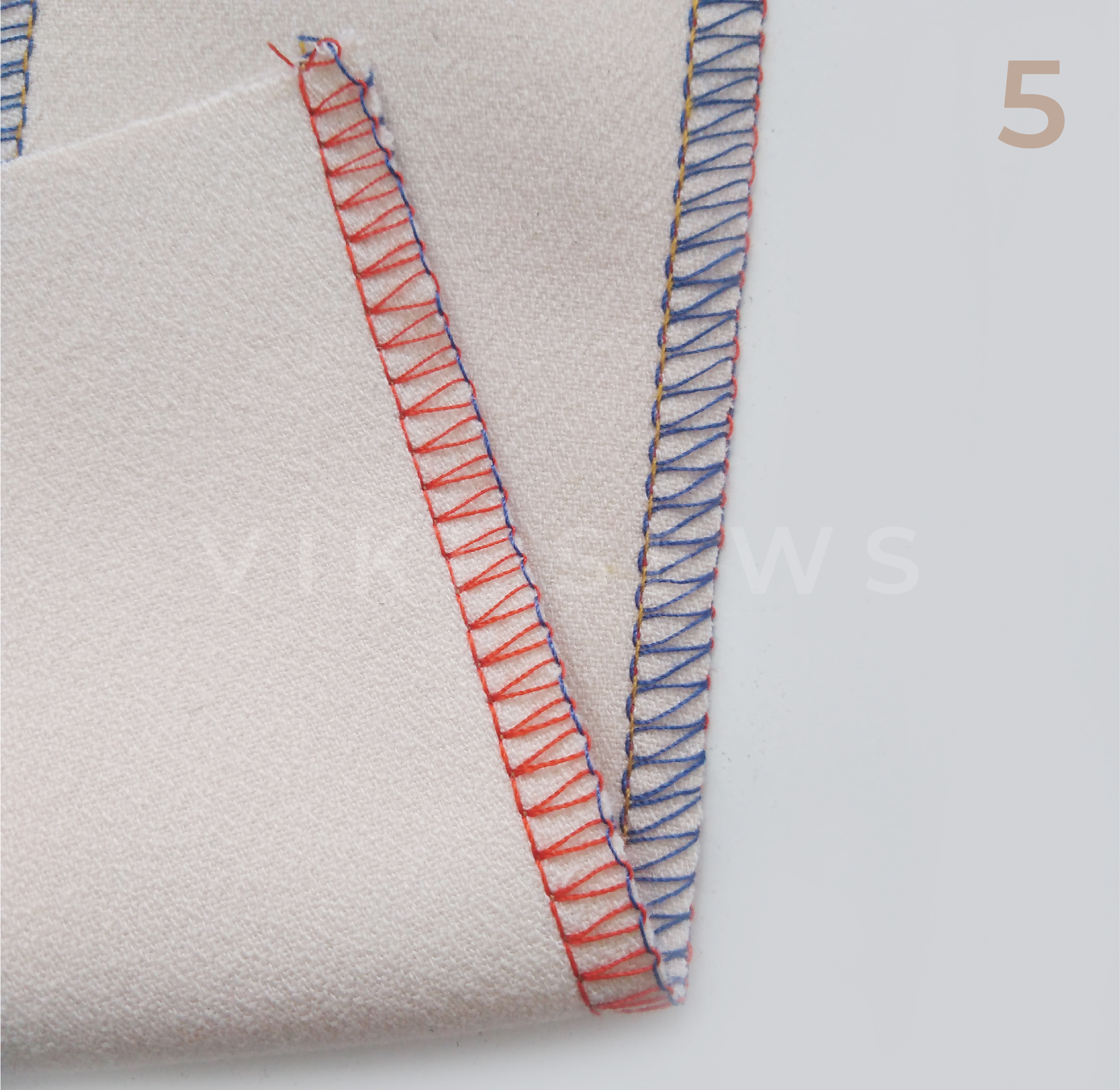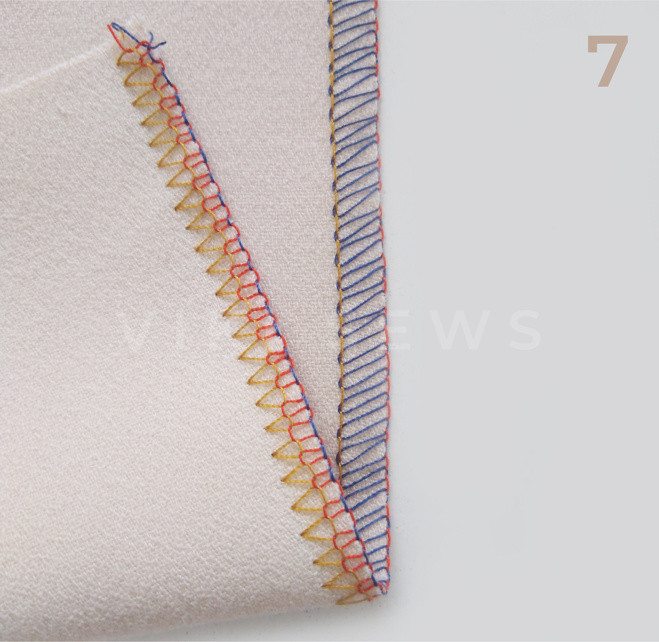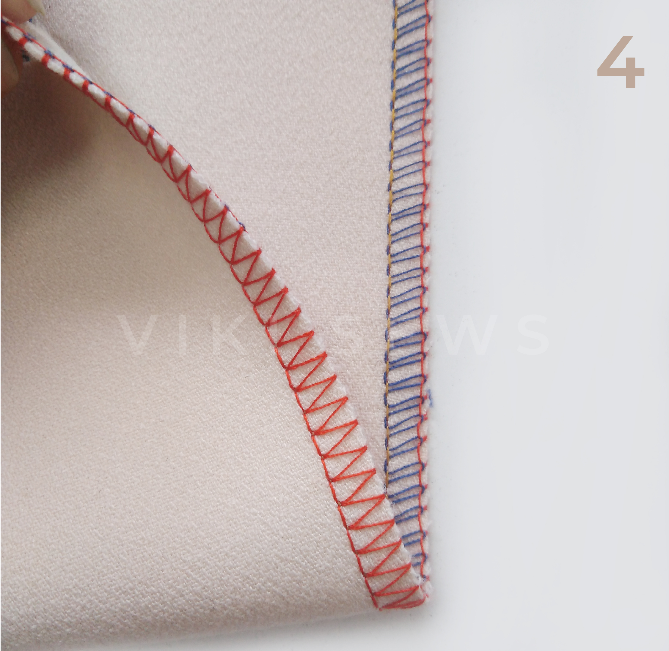 3-ниточная, или обметочная, используется для обработки срезов от осыпания. Ее ширина 4-6 мм. Ее легче испортить, чем 4-ниточную. Она подходит для более тонких тканей и тканей, не склонных к сильному осыпанию.