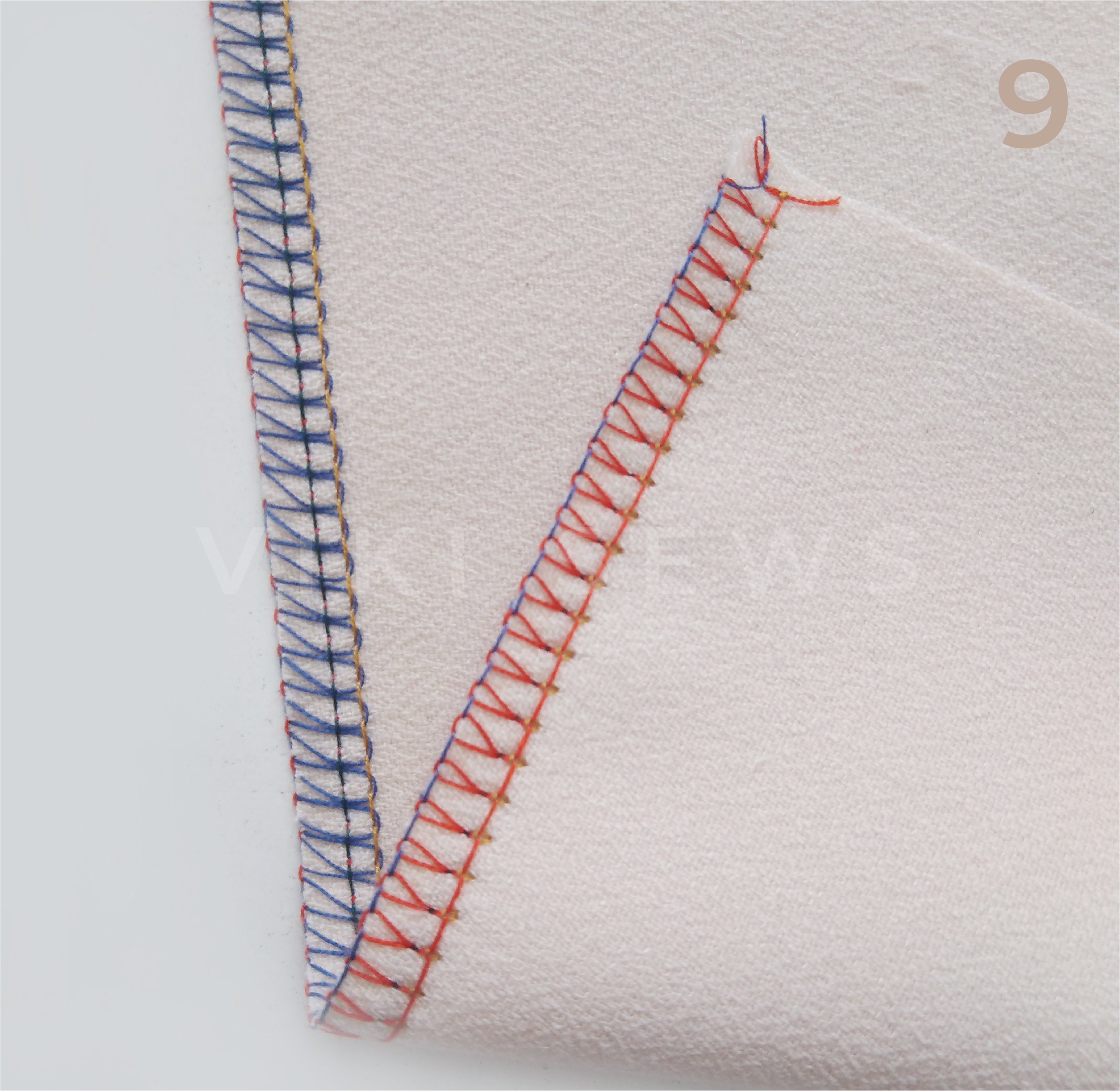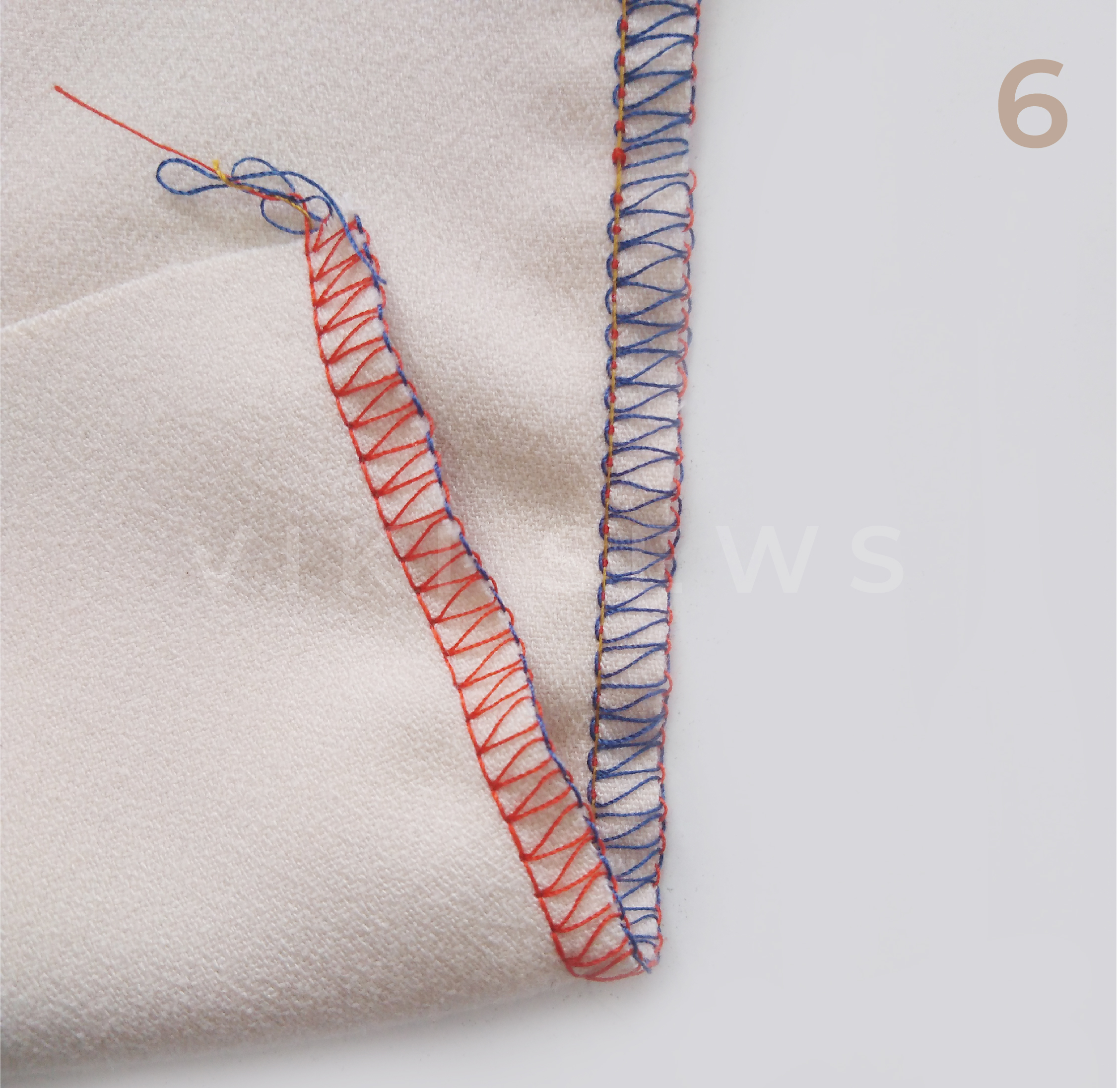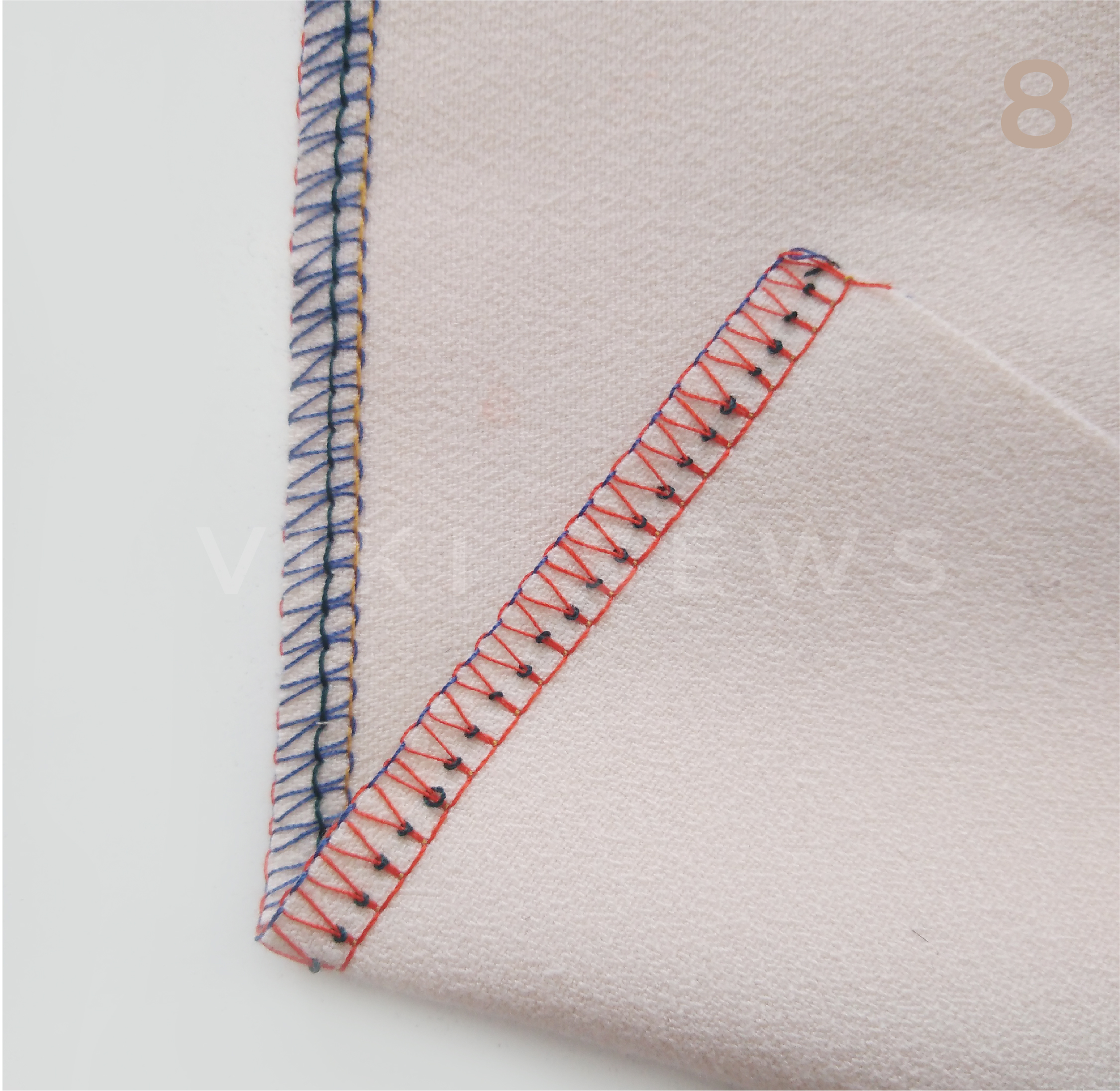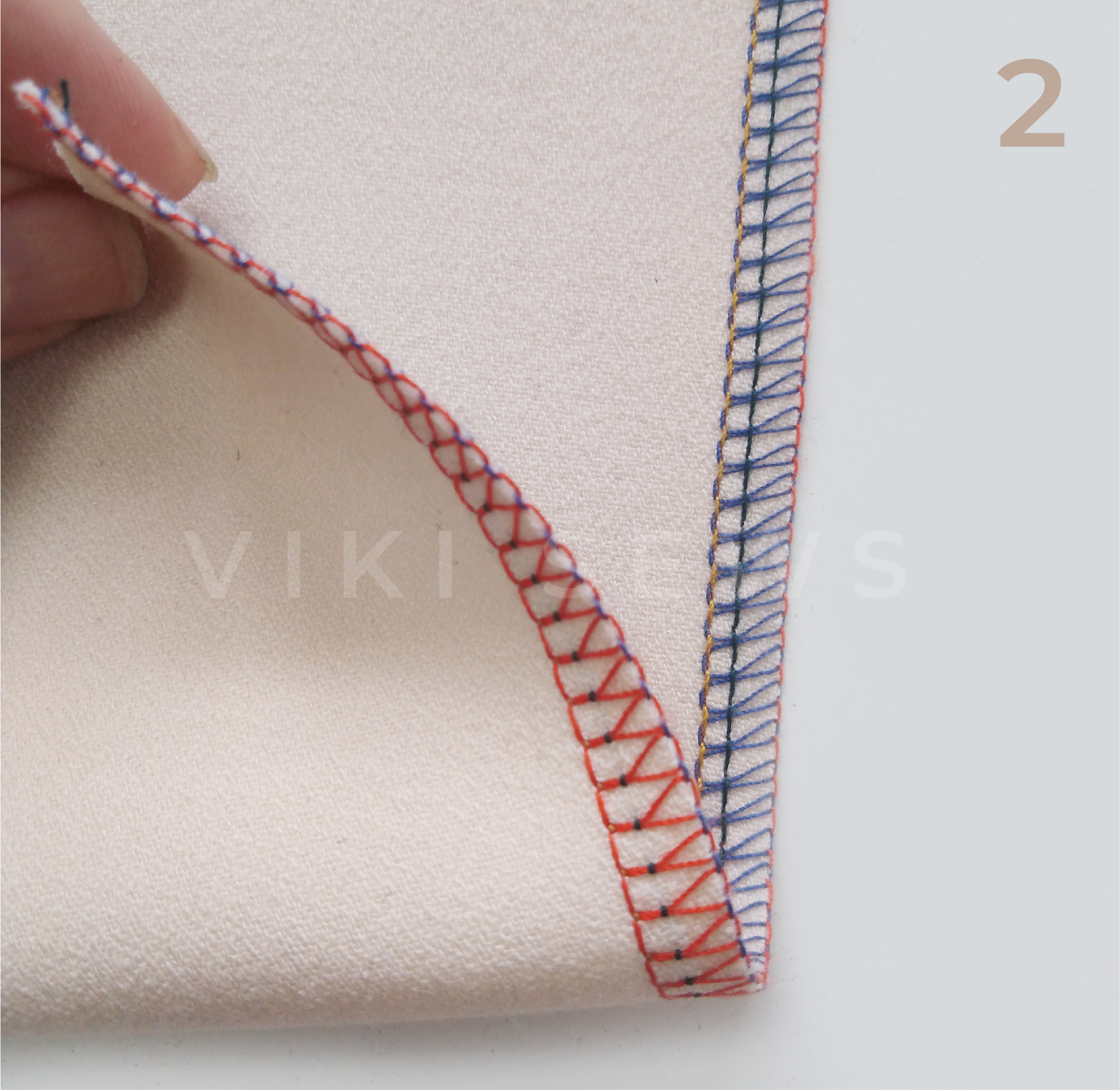 3-ниточная, или обметочная, используется для обработки срезов от осыпания. Ее ширина 4-6 мм. Ее легче испортить, чем 4-ниточную. Она подходит для более тонких тканей и тканей, не склонных к сильному осыпанию.