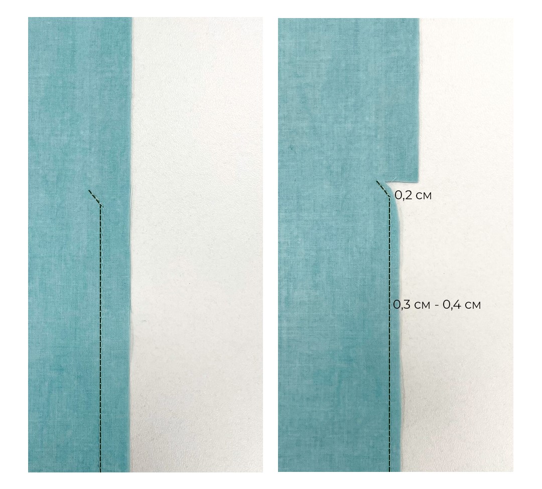 - Срежьте припуски до 3-4 мм. Выполните поперечную рассечку, не доходя до строчки 2 мм.