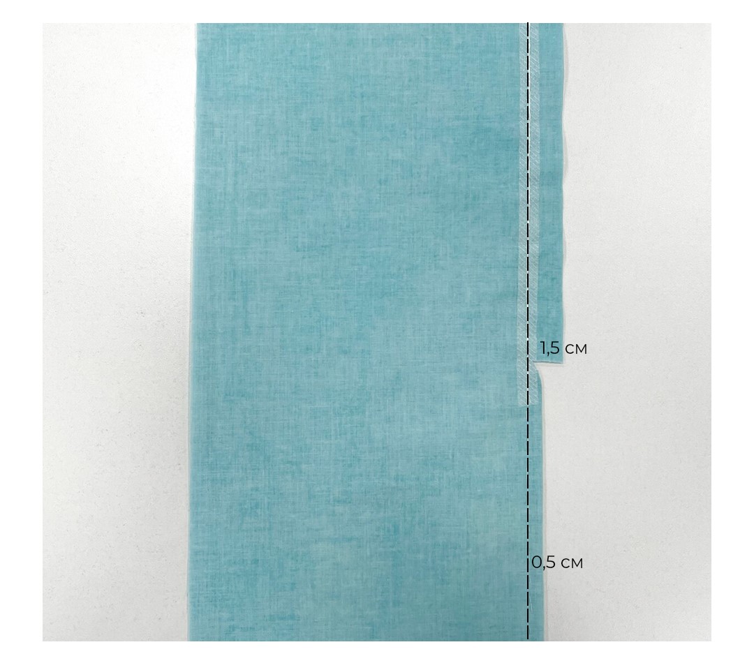 Проложите ручные стежки на участке обработки молнии — 1,5 см от среза; на участке стачивания деталей — 5 мм от среза.