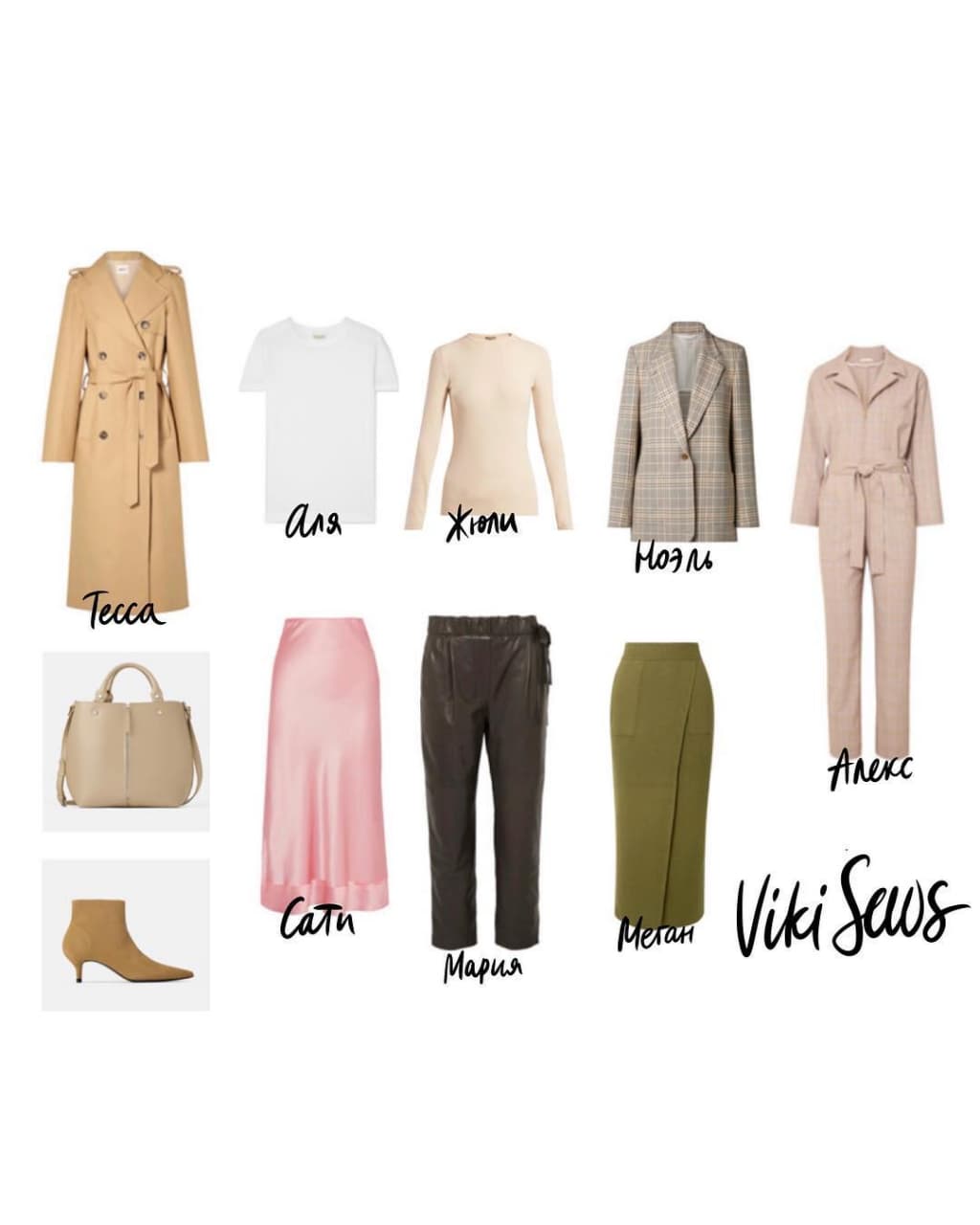 Во-первых, было бы неплохо его в принципе планировать. Знаю, многие шьют по вдохновению, часто не задумываясь, есть ли подходящие обувь, верхняя одежда, “верх” или “низ” и так далее. Поэтому я предлагаю планировать гардероб наглядно — использовать при составлении коллажа обувь и сумки, которые есть в реальности и которые планируется носить.