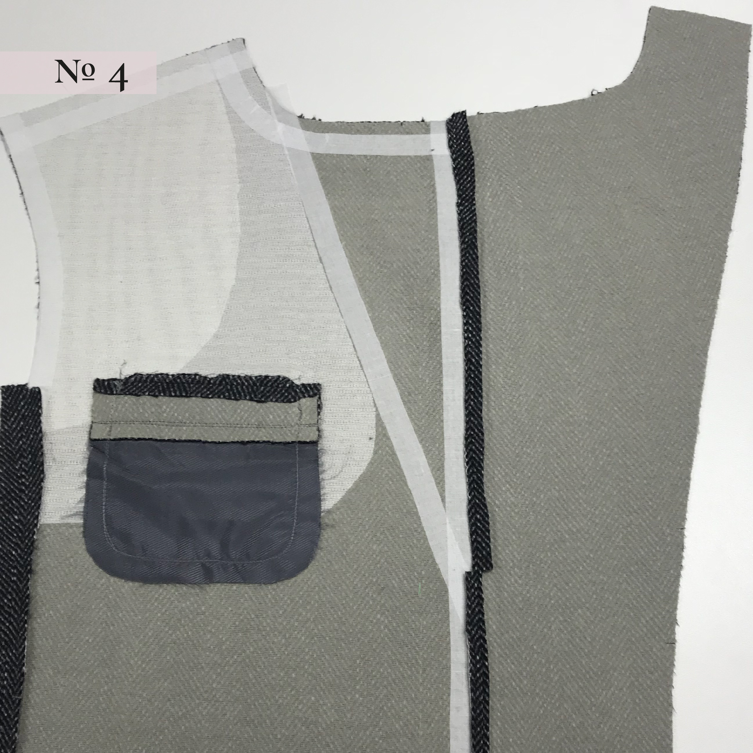 В толстых тканях при обтачивании деталей припуск очень сильно пролегает на лицевую сторону и пропечатывается. Чтобы сделать край тоньше и более плоским, припуски подрезают сначала вместе до 5 мм, потом только нижней детали до 1-2 мм, т.е. ступенькой (рис. 4). Так не будет резкого перехода и сильного утолщения. А верхний более широкий припуск закроет подрезанный нижний. Уголки также высекаются, не доходя до строчки 1-2 мм.