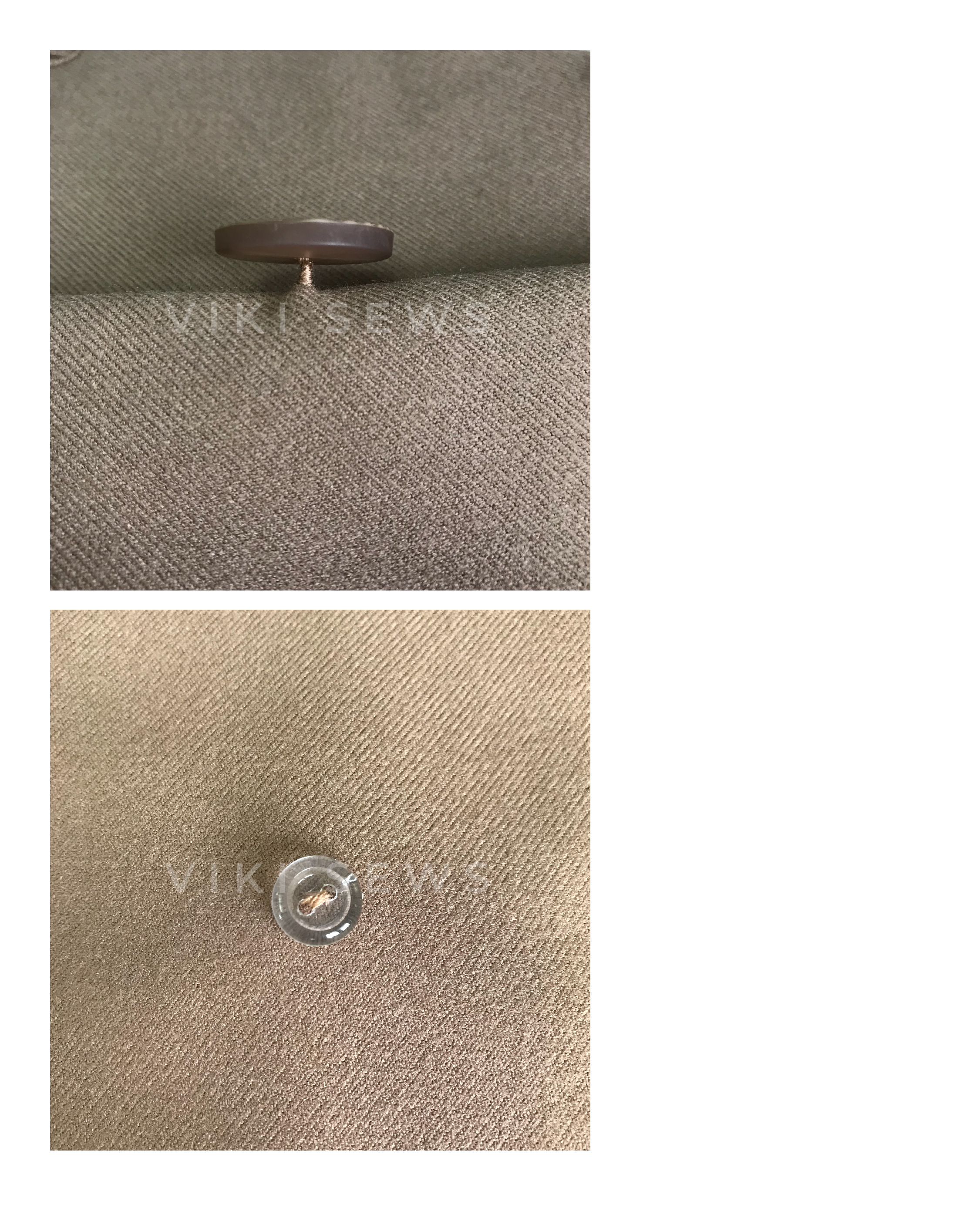 Чтобы создать более прочное соединение пуговицы с изделием, с обратной стороны пришивается подпуговица или еще одна пуговица, если изделие двубортное. Для этого с лицевой стороны изделия при пришивании пуговицы формируется ножка из ниток, а с изнаночной стороны пуговица (подпуговица) крепится плотно к ткани.