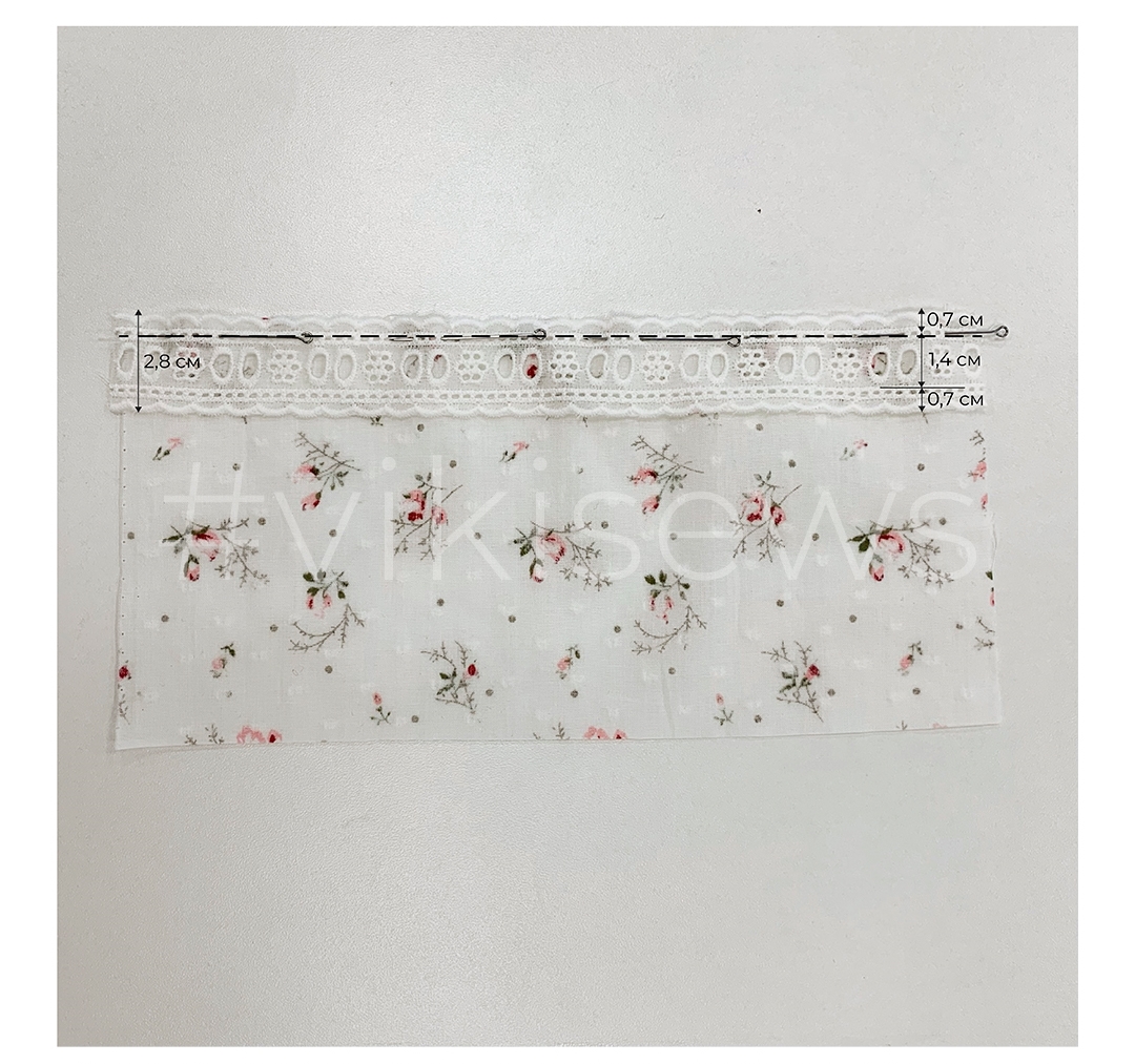 ВАЖНО! Так как мы не даем дополнительных припусков, а разрезаем уже выкроенную деталь, то величина швов стачивания должна быть равна величине ширины кружевной тесьмы в готовом виде.