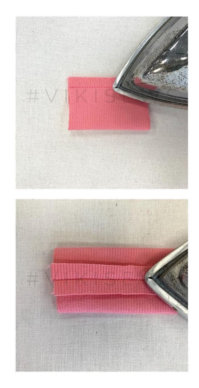 - Деталь верхней вставки манжеты перегните пополам изнаночной стороной внутрь и приутюжьте.