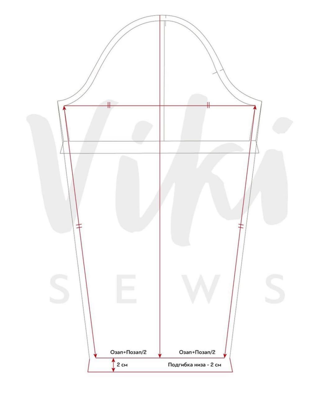 4. Полученную величину отложите равномерно в обе стороны от вертикальной линии. Полученные точки соедините прямыми линиями с верхними точками передней и задней линий рукава. Проверьте длину этих отрезков — они должны быть одинаковые. Если нужно, откорректируйте.
