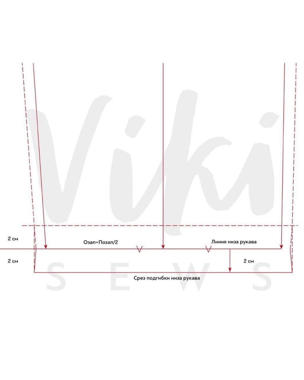 5. От нижнего края рукава вниз отложите 2 см и проведите параллельную линию — это срез подгибки низа. Припуск подогните и в таком положении срежьте все лишнее.